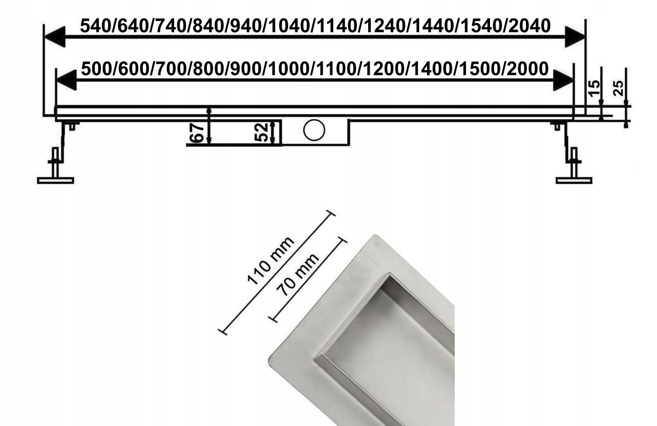 ЛИНЕЙНЫЙ СЛИВ, СУХОЙ СИФОН 2в1, ГЛУБОКИЙ ОТСАДНИК - 80 см