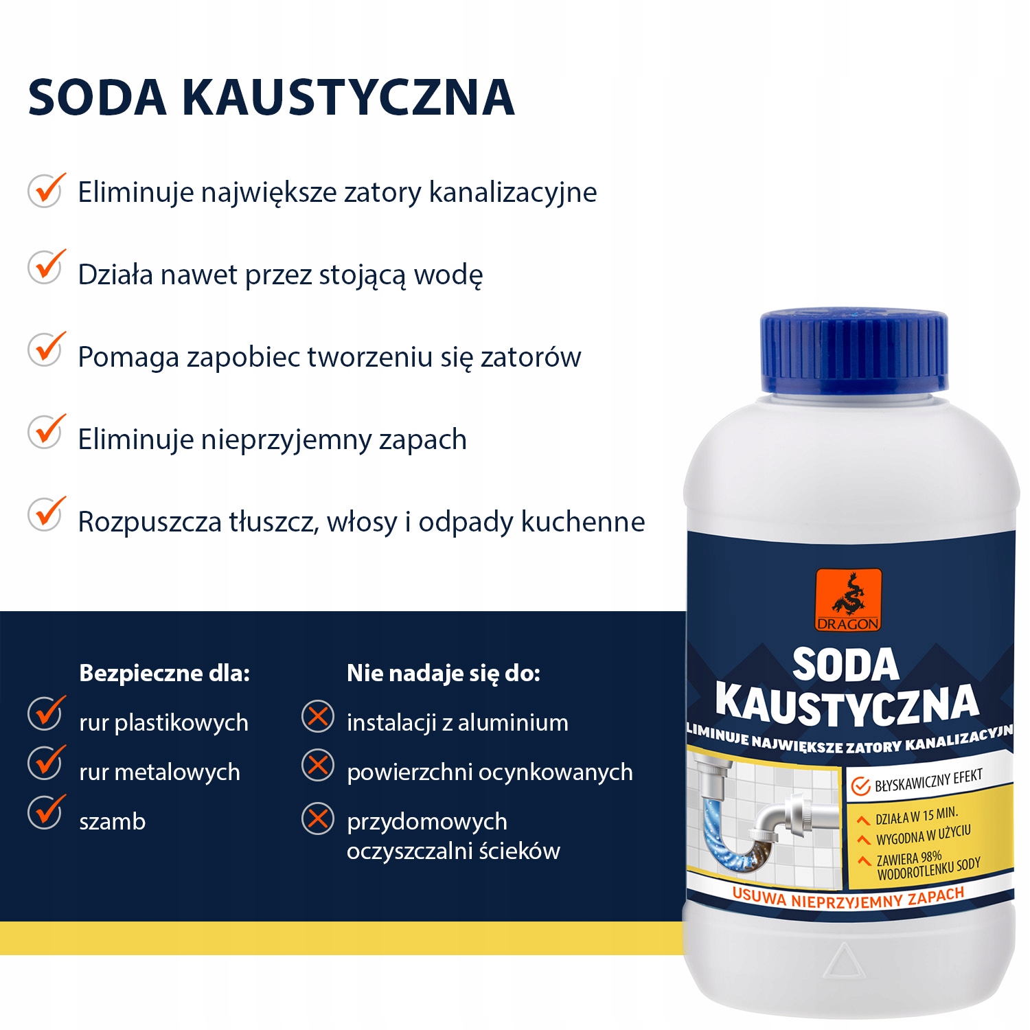 Простой в использовании препарат для разблокировки канализационных труб и устранения засоров в засоренных раковинах. Удаляет неприятные запахи и растворяет бумагу, волосы, жир и кухонный мусор. Содержит около 98% гидроксида натрия в виде хлопьев или гранул.