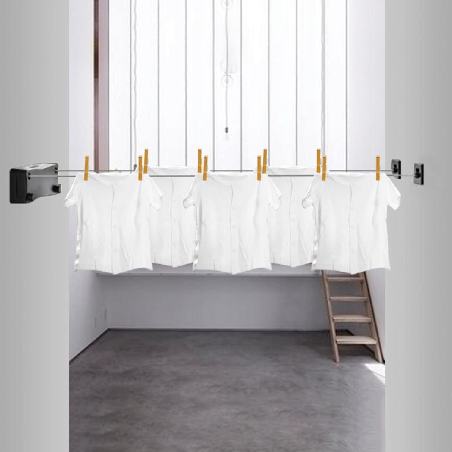 -Сушилка имеет длину 14 футов и имеет 2 веревки, каждая из которых может выдерживать вес 44 фунта, что позволяет повесить больше одежды.