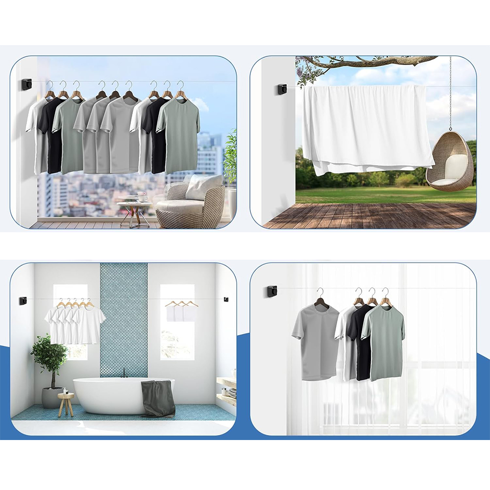 ☑️Эта вешалка для одежды изготовлена из высококачественного корпуса из АБС-пластика, алюминиевого монтажного основания и троса из нержавеющей стали. Он водонепроницаем, устойчив к ржавчине и солнечному свету. Это отличный выбор как для внутреннего, так и для наружного использования.