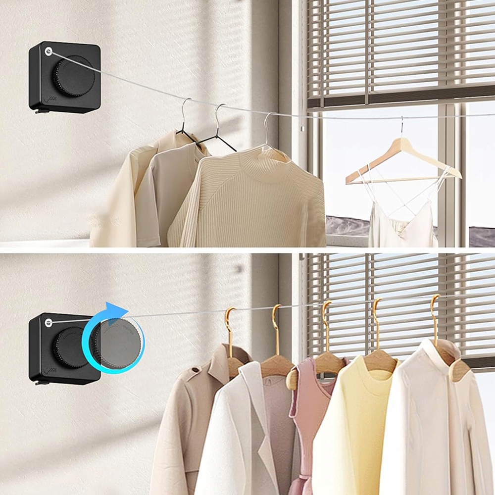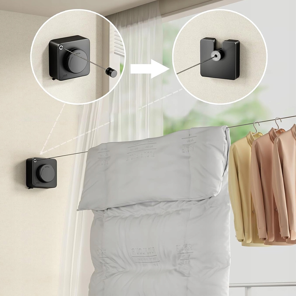 ☑️Когда она вам не нужна, наша бельевая веревка складывается и занимает так мало места, что вы забудете, что она у вас есть. Когда он вам понадобится, просто вытащите его и повесьте на крючок.