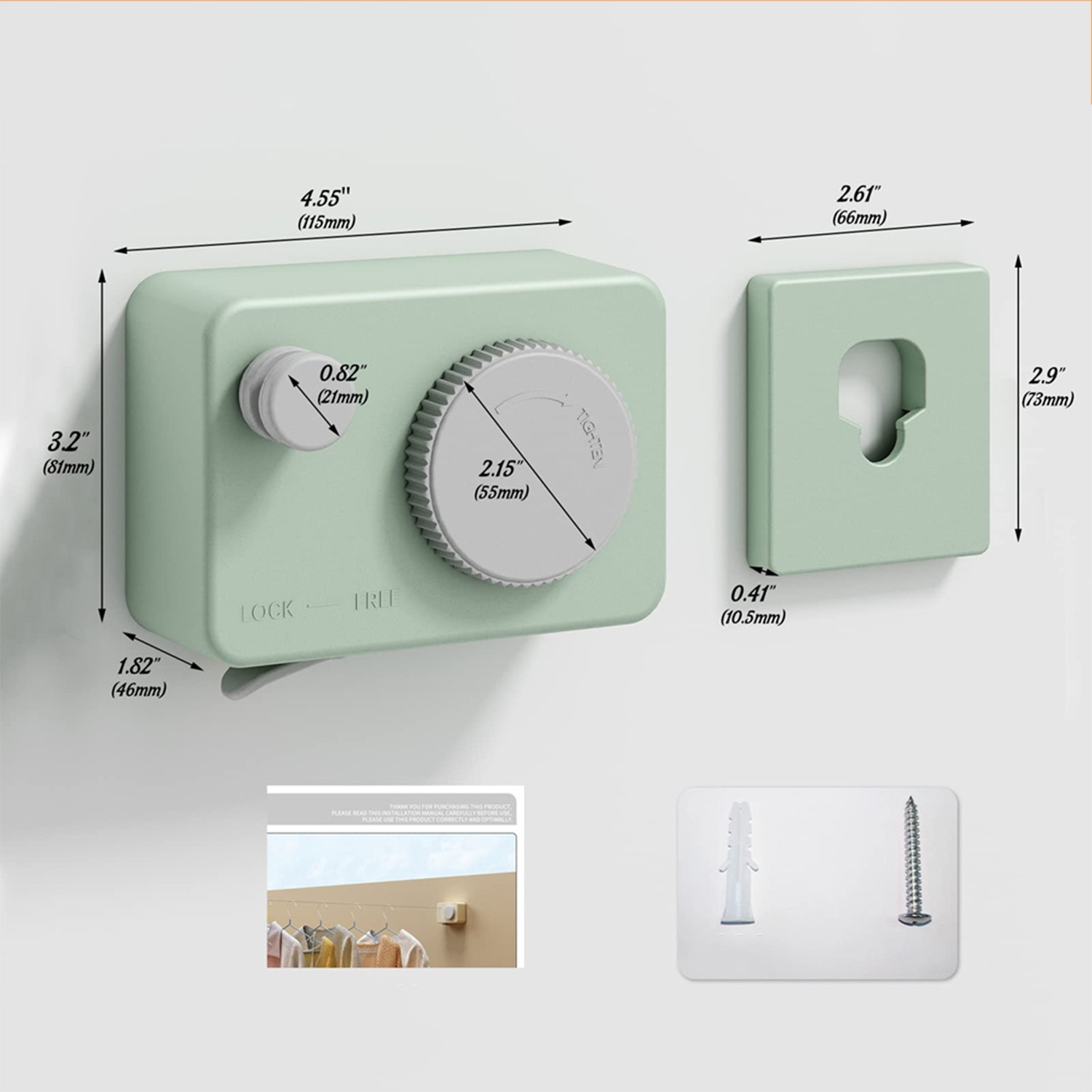 - ✔️Простота в использовании: вытяните леску на нужную длину, нажмите кнопку блокировки, затем поверните ручку, чтобы затянуть леску и предотвратить ее провисание. После этого вы можете повесить одежду.