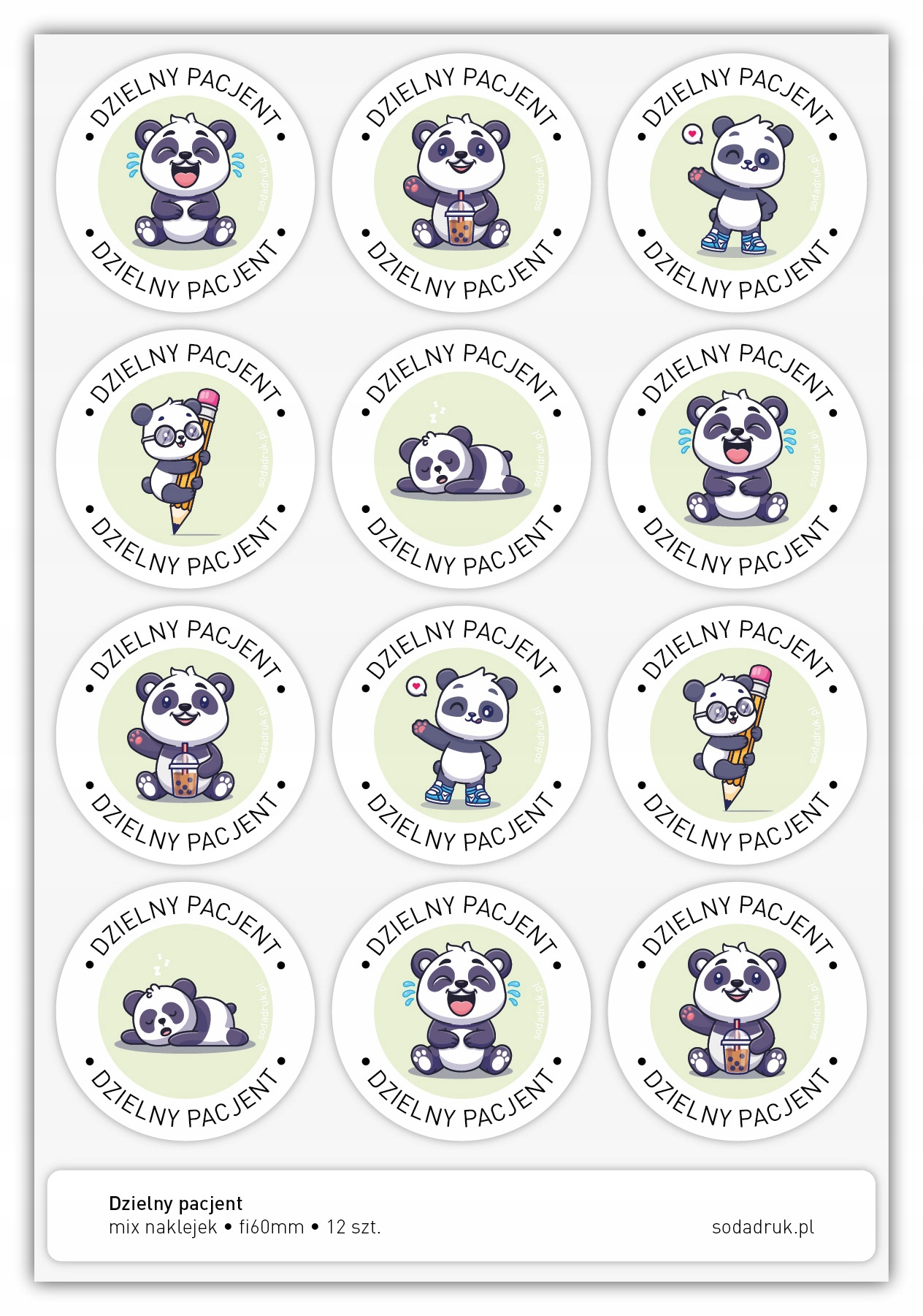 Відважний пацієнт, наклейки: 12 шт. панда суміш
