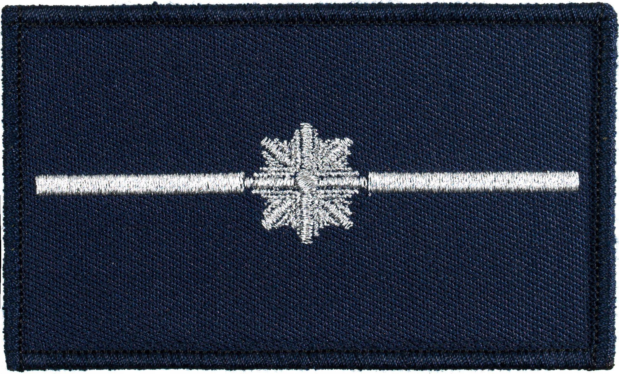 Нашивка со знаком звания для сотрудников полиции, вышитая серебряной металлизированной нитью на темно-синем материале. Идеально подходит для софтшелла, флиса или жилета.