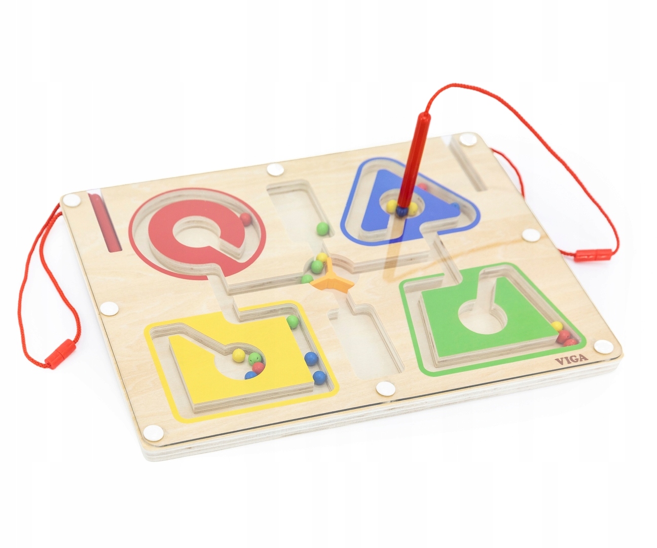 <р> Представляем деревянную игрушку от VIGA - магнитный лабиринт. <р> Лабиринт — это творческая и обучающая игрушка, предназначенная для развития моторики, зрительно-моторной координации и навыков логического мышления посредством игры в сортировку цветов и форм. Это требует сосредоточенности и точности, что способствует развитию концентрации. <р> С помощью магнитных стилусов дети проводят по лабиринту разноцветные шарики. Стилусы (2 шт) прикреплены к игрушке, что предотвращает их потерю. Компактный размер, легко носить с собой, идеально подходит для игры дома или в путешествии. Все это имеет безопасные закругленные края и прочно изготовлено, что обеспечивает долговечность и безопасность во время игры. <р> Вся эта вещь изготовлена из древесины бука и расписана нетоксичными красками, которые привлекут внимание и воодушевят вас на игру, при этом доставив массу удовольствия. Краски на 100% безопасны и соответствуют стандартам безопасности EN71 и ASTM. <р> Лабиринт упакован в красочную картонную коробку с окошком, идеальную для подарка. <р> Игрушка предназначена для детей старше 18 месяцев. <р> Вся серия игрушек VIGA создана, чтобы оправдать ожидания родителей и детей по улучшению их развития посредством игры. <р> Размер продукта: <р> <р> Длина 300 мм х высота 13 мм х ширина 225 мм <р> Размеры упаковки: <р> <р> Длина 310 мм х высота 40 мм х ширина 240 мм <р> Вес: 0,6 кг <р> Описания являются собственностью PM Investment Group Napert, Soszyński Spółka komandytowa. Компания не разрешает их копирование или воспроизведение – полностью или частично – без согласия. <р> ИНФОРМАЦИЯ О БЕЗОПАСНОСТИ ПРОДУКТА <р> Viga 44746 Магнитный лабиринт - сортировка цветов и форм <р> Игрушка предназначена для детей от 18 лет и старше. <р> ВНИМАНИЕ! Не подходит для детей младше 18 месяцев. В комплект входит длинная веревка. Риск удушья. <р> ВНИМАНИЕ! Изделие содержит магниты или магнитные детали. Магниты, притянутые друг к другу или прилипшие к металлическому предмету в теле человека, могут вызвать серьезные или даже смертельные травмы. При проглатывании или вдыхании магнитов немедленно обратитесь за медицинской помощью. <р> ПРОДЮСЕР: <р> Нинбо Вига Международная Компания, ООО <р> 20F, 588 CANHGAI ROAD <р> 315040, НИНБО, Китай <р> электронная почта: sales@vigatoys.com <р> ИМПОРТЕР: <р> PM INVESTMENT GROUP Napert, Soszyński Sp.k. <р> Подкова 18 <р> 04-937 Варшава, Польша <р> электронная почта: info@pminvestment.pl <р> РУКОВОДСТВО ПОЛЬЗОВАТЕЛЯ ВАЖНО! ПРОЧИТАЙТЕ ВНИМАТЕЛЬНО И СОХРАНИТЕ ДЛЯ ДАЛЬНЕЙШЕГО ИСПОЛЬЗОВАНИЯ. <р> ПРЕДУПРЕЖДЕНИЯ! Игрушку может собрать только взрослый. Перед использованием игрушки снимите упаковку и храните отвертку и мелкие детали, необходимые для сборки, в недоступном для детей месте. Неправильная установка может стать причиной травм детей. Перед использованием игрушки проверьте, все ли элементы надежно затянуты. Не используйте игрушку, если какая-либо часть повреждена или отсутствует. Очистка: Протирать влажной тканью или щеткой с мягкой щетиной, смоченной мыльной водой. Не замачивайте древесину в воде. После стирки вытрите насухо чистой тканью. ИНСТРУКЦИИ ПО СБОРКЕ Следуйте графическим инструкциям по сборке, прилагаемым к игрушке. Перед сборкой – храните все компоненты в недоступном для ребенка месте. Монтаж можно производить только: