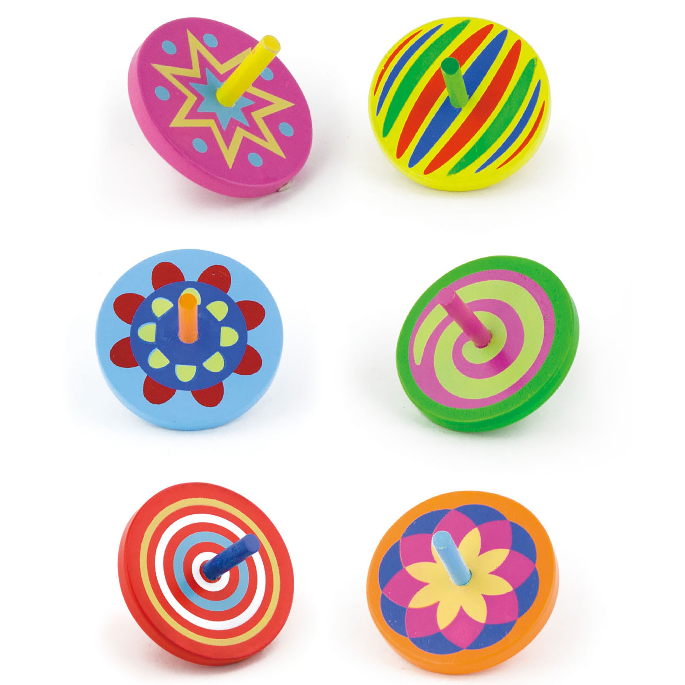 Разноцветные деревянные волчки порадуют вашего ребенка во время игры. Детям понравятся красочные узоры на волчках, и они будут создавать новые узоры во время вращения.