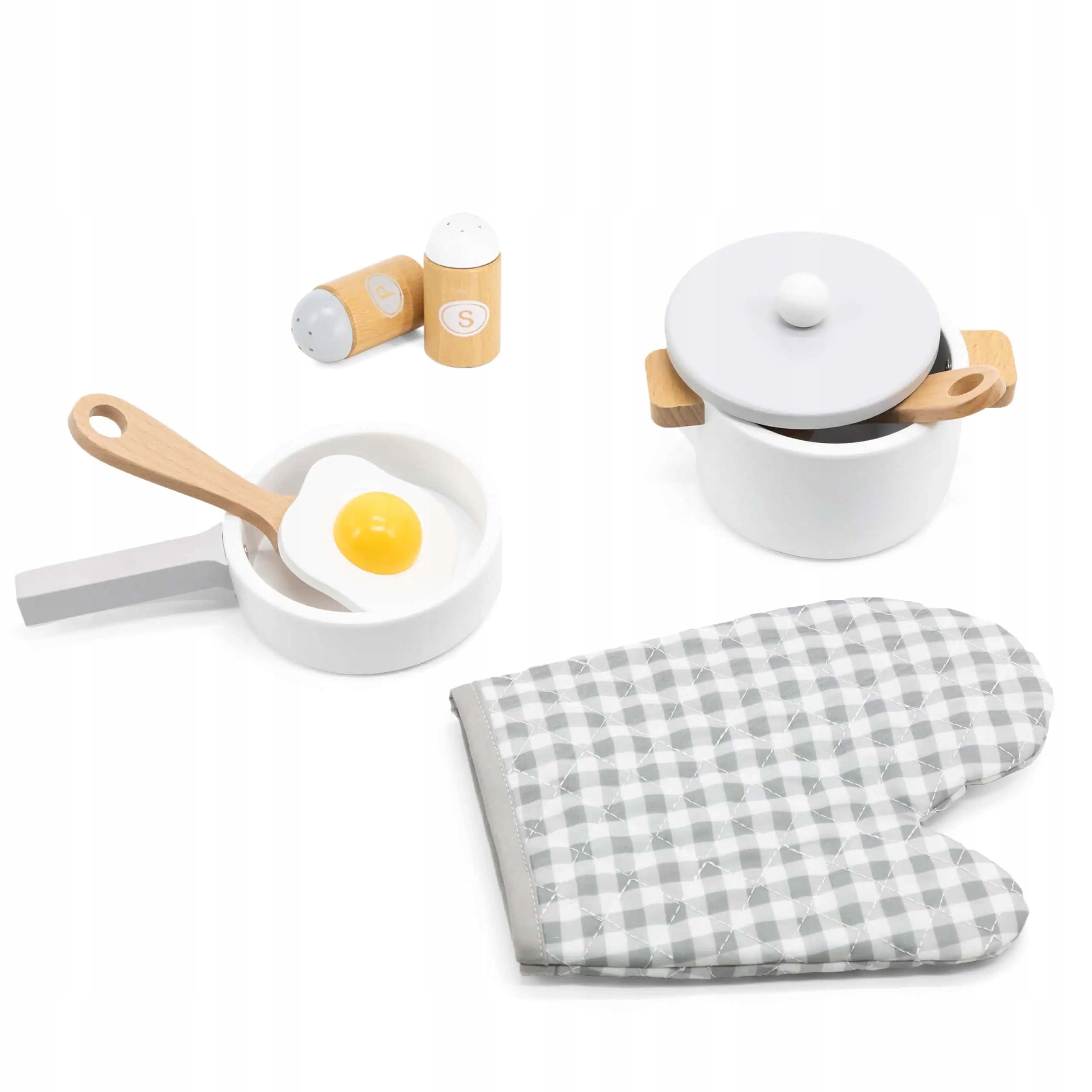 Крайняя кулинарная набор бренда Viga - отличный комплект для игры с детской кухней, благодаря которой вы можете приготовить забавную еду для семьи и друзей. Toy поощряет воображение, творческое развлечение и координационная рука - глаз. Набор включает в себя кастрюлю с крышкой, кастрюлю с яйцами, 2 специями, шпателем, шпателем, ложкой и кухонной перчаткой.