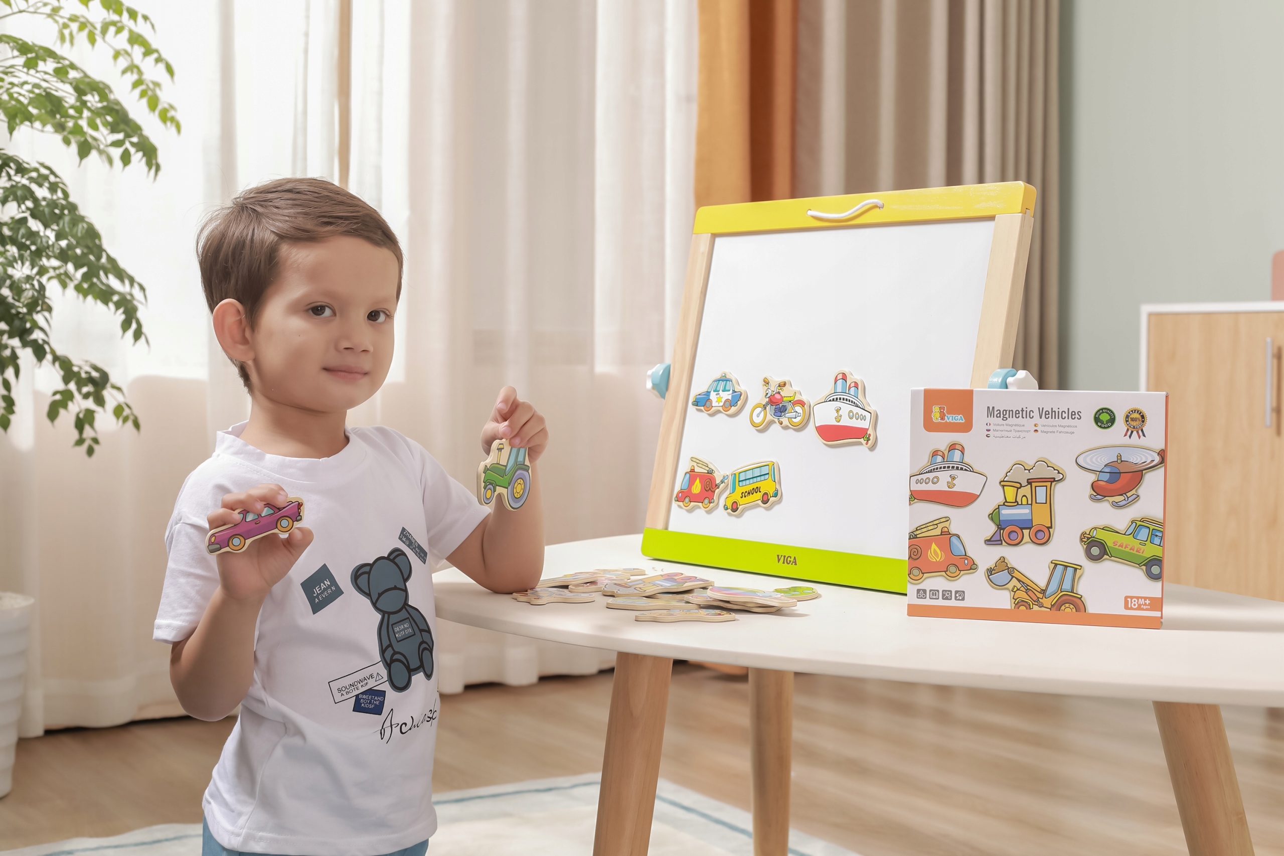 Набор деревянных магнитов Автомобили Viga это отличная головоломка, которая развивает навыки ручного труда и помогает освоить первые знания о транспортных средствах. В комплект входит 20 различных магнитов. Их можно прикрепить к магнитной доске и холодильнику. Теперь ваш ребенок с легкостью приобретет ранние детсадовские знания.