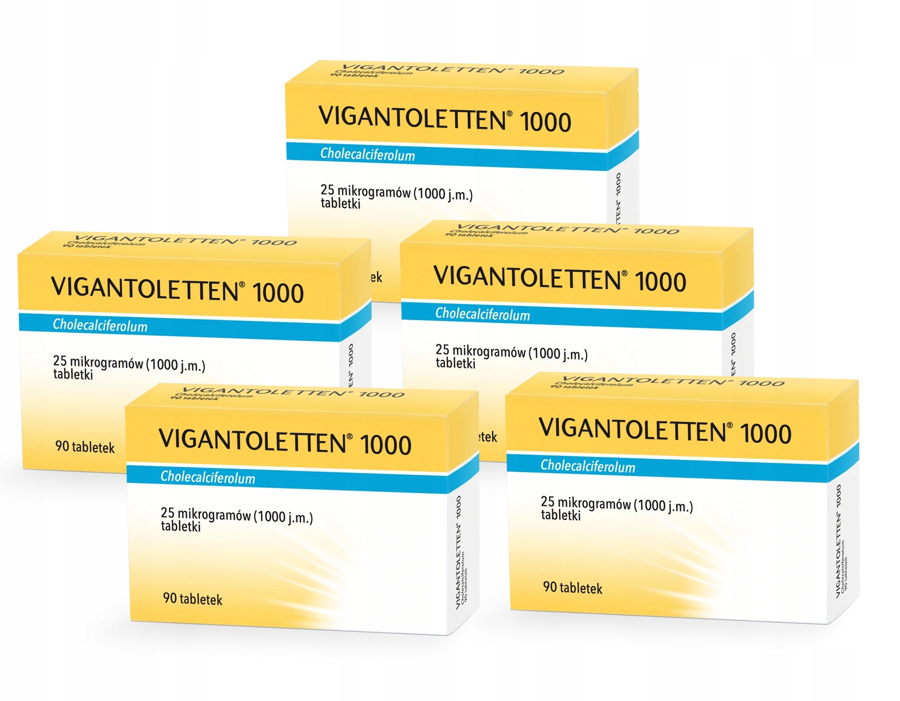 1 Vigantoletten Tablet Lek содержит 1000 МЕ. Витамин D, то есть 25 мкг (холекальциферол, порошок, содержащий: холекальциферол, D, L-α-токоферол, триглицериды насыщенных жирных кислот с цепью средней длины, модифицированным крахмалом, аскорбатом натрия, сахарозой, бесплодной кремневой силика).