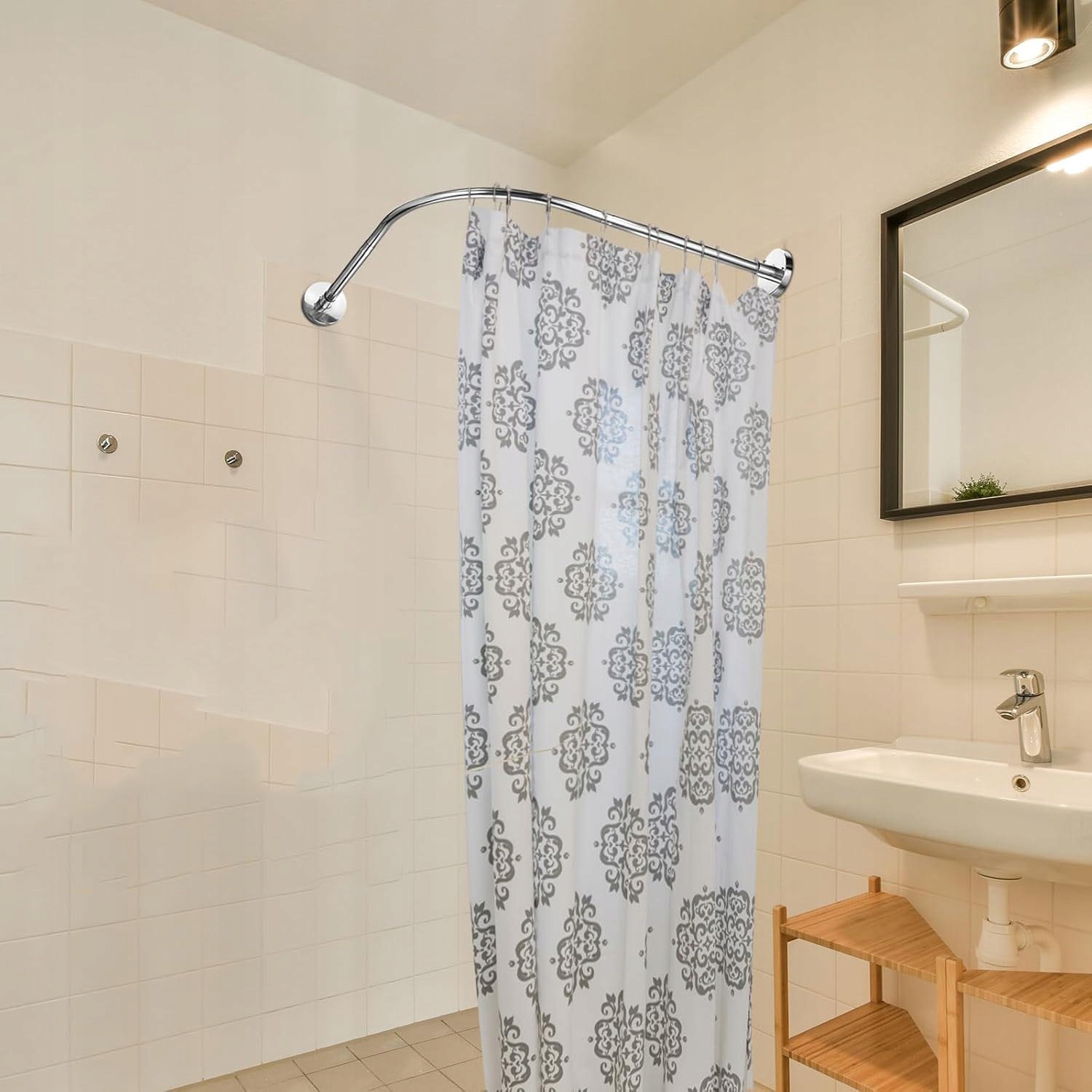 🚿 🚿🚿【 Идеальный размер】 палка для душа можно отрегулировать в диапазоне от 70 до 95 см, чтобы соответствовать его с открытым пространством. Перед покупкой измерьте длину и ширину вашей комнаты. Эта изогнутая душевая стержень облегчает повесить шторы, а его простая, щадящая пространственная структура позволяет легко и удобно повесить шторы. Подходит для ванных комнат, душевых кабик, ванн, магазинов одежды, раздевалки, шкафа и т. Д. Диаметр углового стержня составляет 2,5 см. Следует помнить, что при покупке занавески для душа диаметр крючка должен быть больше 2,5 см. Примечание: палочка для душа не поставляется с душем.