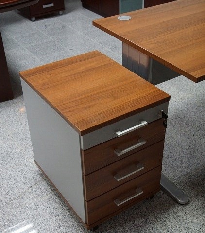 Столешница стандартно доступна в цвете темного ореха в сочетании с серым. При желании вы можете купить контейнеры, полки, столы и другие аксессуары для прилавка (см. наши другие аукционы)