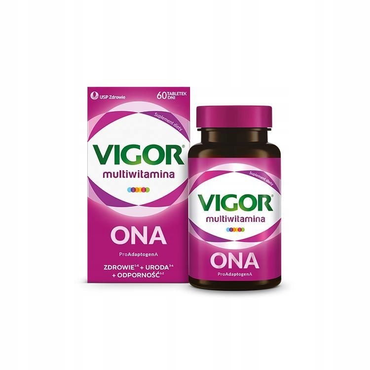 Vigor multivitamin ONA – это биологически активная добавка, представляющая собой композицию витаминов и минералов для женщин, обогащенную экстрактом ашваганды. Продукт предназначен для взрослых. Подходит для вегетарианцев. Состав: Наполнители: целлюлоза микрокристаллическая, дикальцийфосфат; экстракт ашваганды (Withania somnifera), стандартизированный до мин. 7% витанолиды; L-аскорбат кальция; оксид магния; цитрат цинка; глазирующий агент: жирные кислоты; фумарат железа(II); йодид калия; амид никотиновой кислоты; D-альфа-токоферилсукцинат; наполнитель: сшитая карбоксиметилцеллюлоза натрия; ретинилпальмитат; холекальциферол; глазирующий агент: гидроксипропилметилцеллюлоза; D-биотин; кальция D-пантотенат; глазирующий агент: магниевые соли жирных кислот; селенит натрия; молибдат натрия; глазирующий агент: диоксид кремния; птероилмоноглутаминовая кислота; глюконат меди(II); сульфат марганца; пиридоксина гидрохлорид; тиамина мононитрат; рибофлавин; глазирующий агент: полиэтиленгликоль; метилкобаламин; филлохинон; пиколинат хрома.