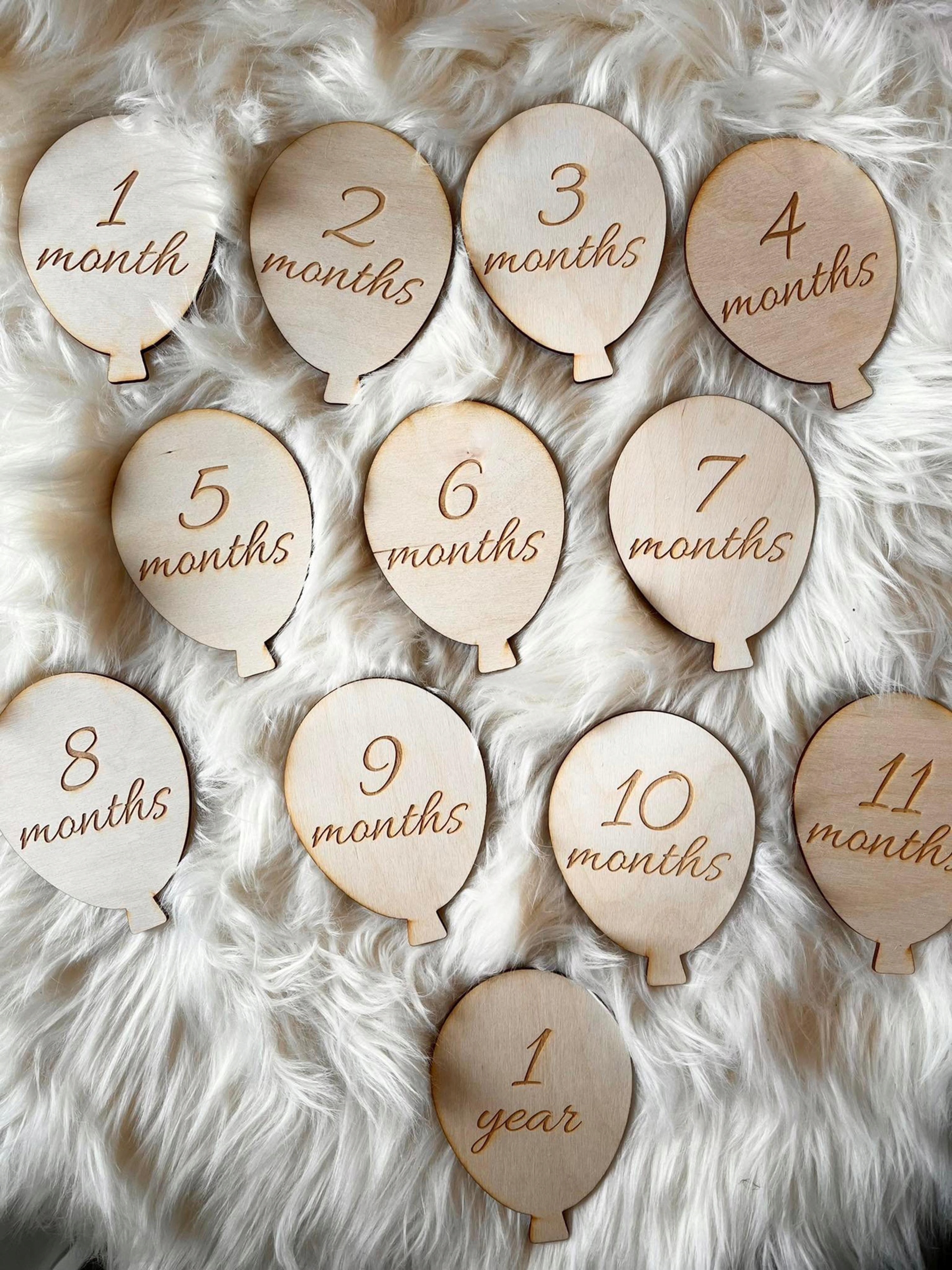 - надписи на английском языке на воздушных шарах (1 месяц - 1 год). ) + одна открытка с надписью «Ой, мальчик» или «О, девочка»