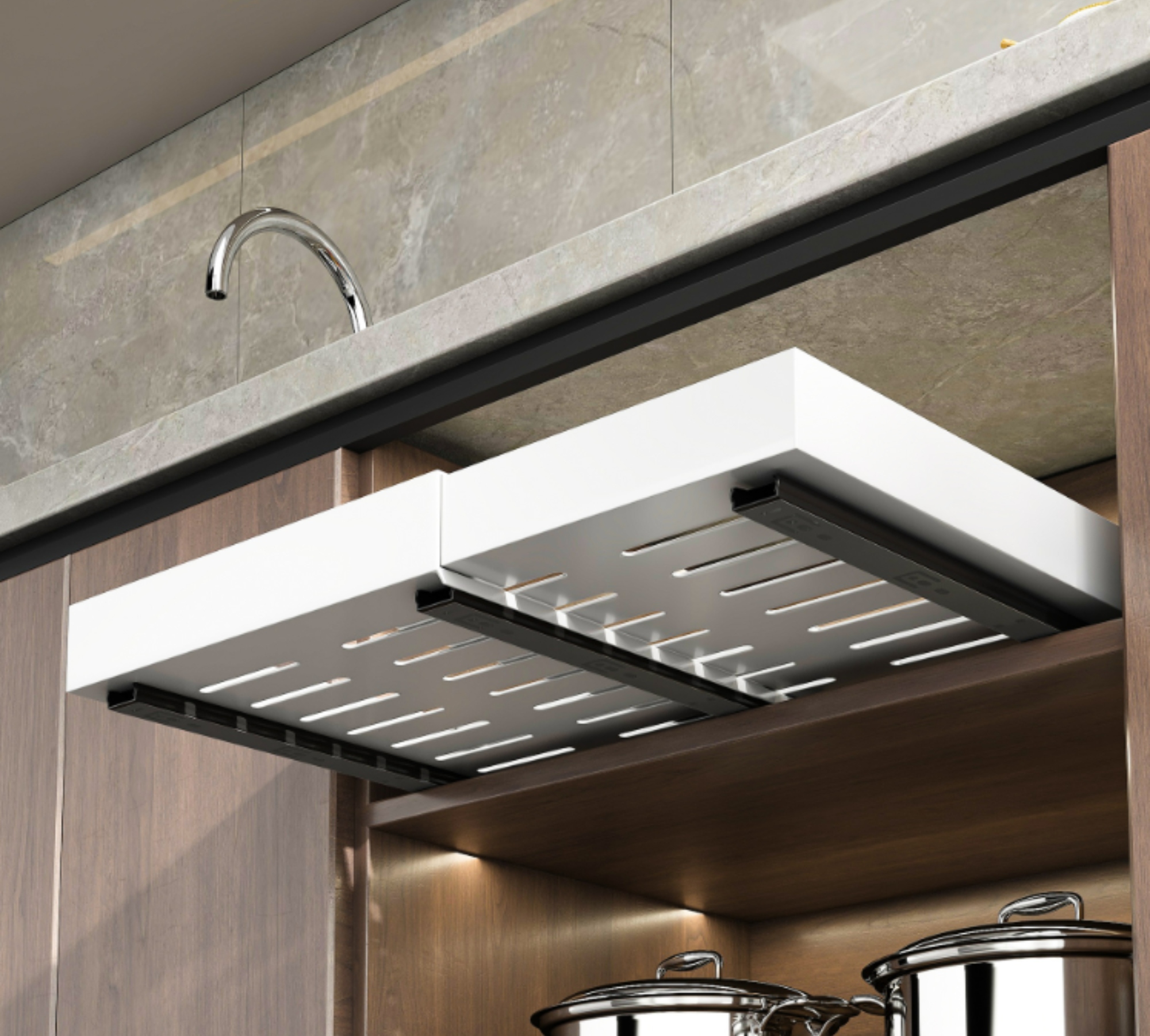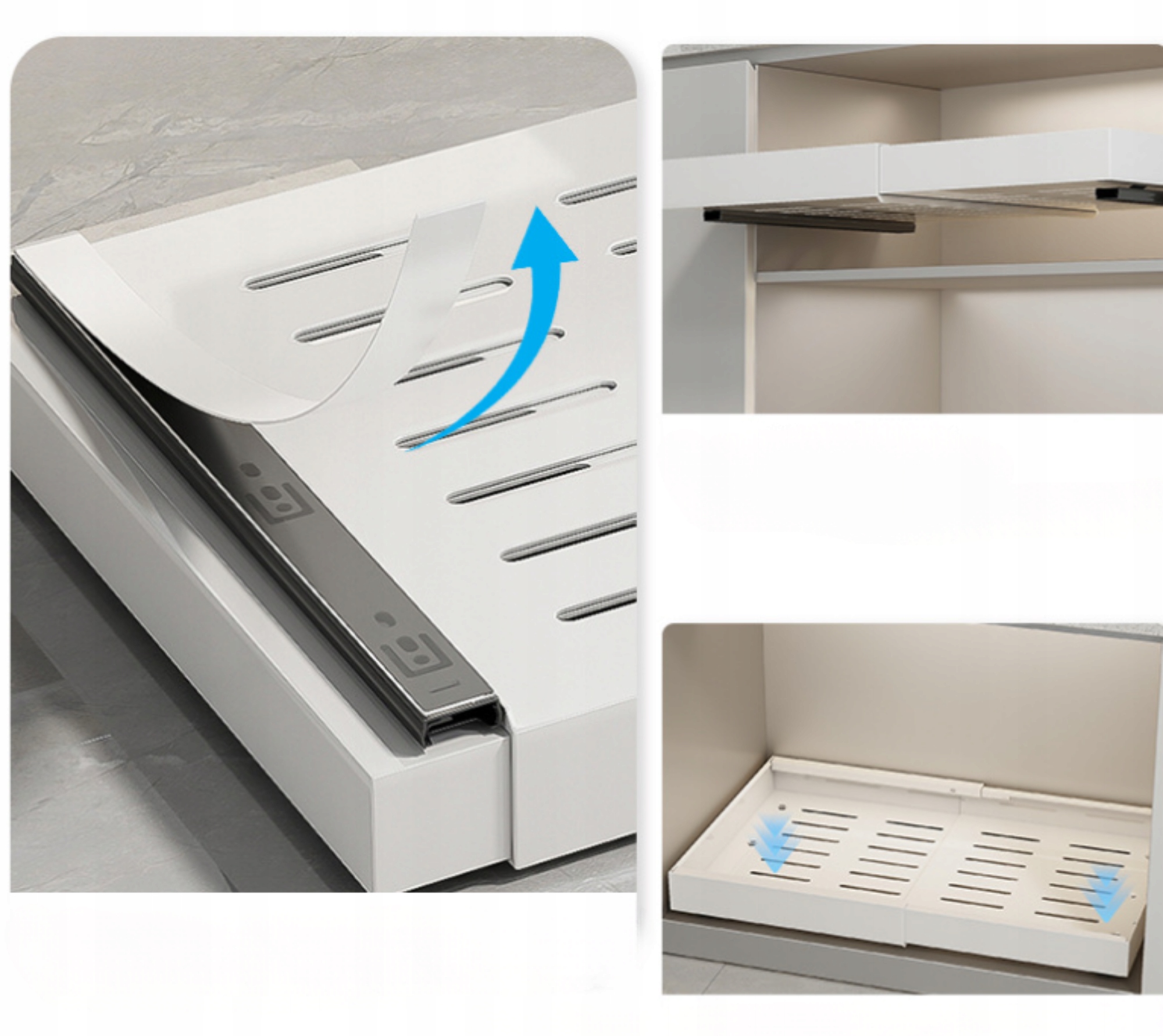 Благодаря твердым руководствам, полка простирается плавно, обеспечивая удобный доступ к хранимым предметам. Система отверстий в нижней части полки обеспечивает лучшую вентиляцию и обслуживание.
