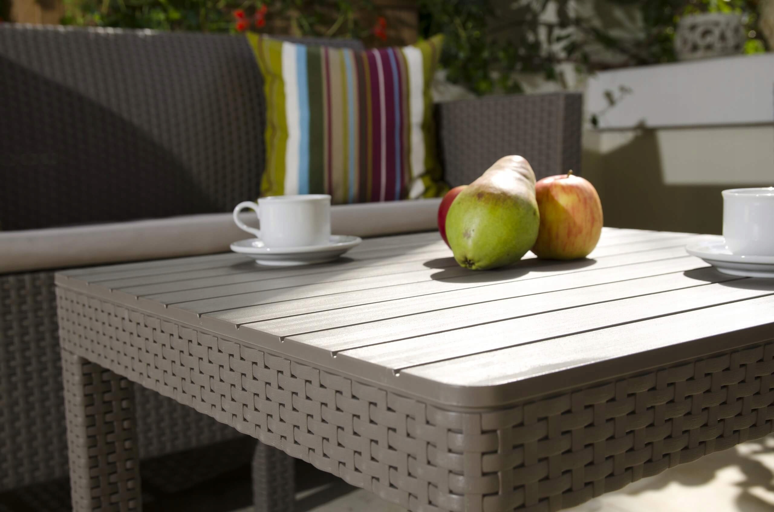 Классический комплект садовой мебели Orlando Weekend – идеальное предложение для тех, кто ищет стильные элементы оборудования балкона или террасы. Элегантные цвета, простая форма и интересная текстура поверхности, вдохновленная натуральным ротанговым переплетением, — основные эстетические ценности изделия. Компактные размеры и простота сборки – дополнительные преимущества набора. В комплект входят два кресла и журнальный столик со столешницей, имитирующей доску. Мебель из качественного пластика устойчива к внешним факторам и ультрафиолетовым лучам.