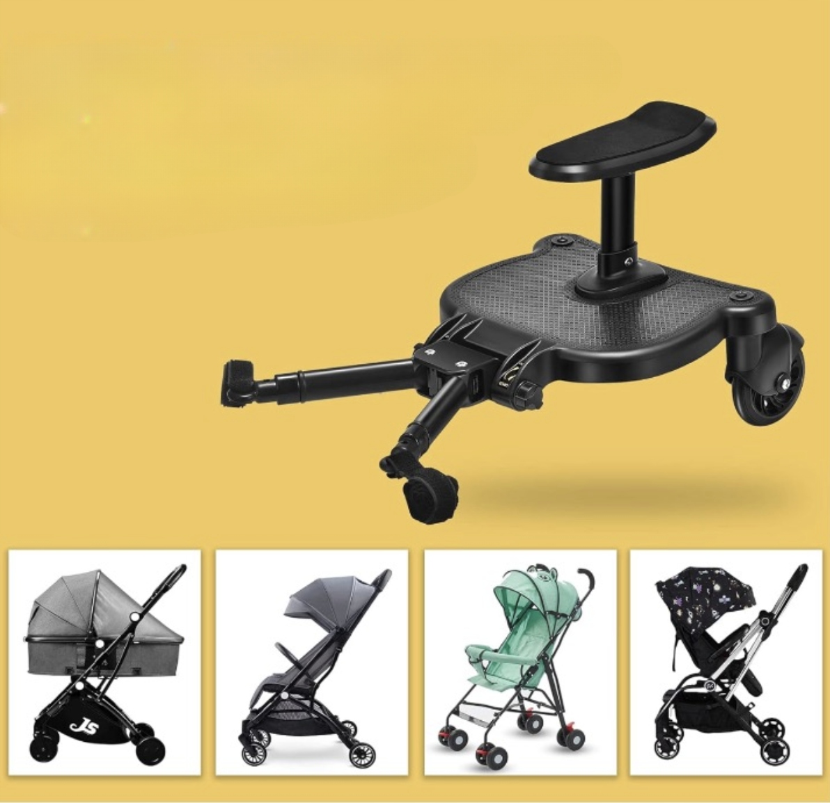 vihir Kiddy Board b> - это практическая и удобная доска с местом, которое вы можете легко подключиться к большинству колясок. Это позволяет старшему ребенку встать или сидеть , не неся его родительским. Удобные крепежные элементы липучки и прочная конструкция являются гарантией безопасного путешествия для малыша и облегчения для опекунов.