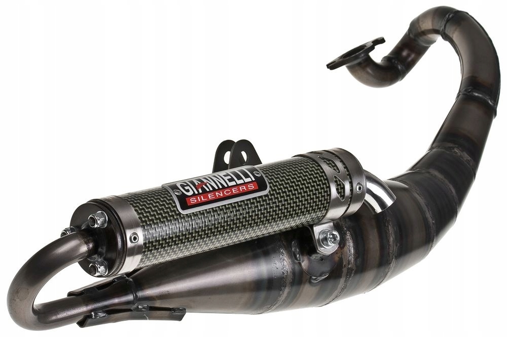 Выхлоп от итальянского производителя Giannelli – модель Reverse. Улучшены характеристики и характеристики. Giannelli Reverse — это спортивный выхлоп, предназначенный для цилиндров объемом 70 куб.см уровней Sport и Midrace. Итальянский производитель дополняет свои характеристики точным исполнением и привлекательной вершинкой из арамидных волокон. Хороший выхлоп по очень привлекательной цене. В комплект входит: полный монтаж, винты, прокладки.