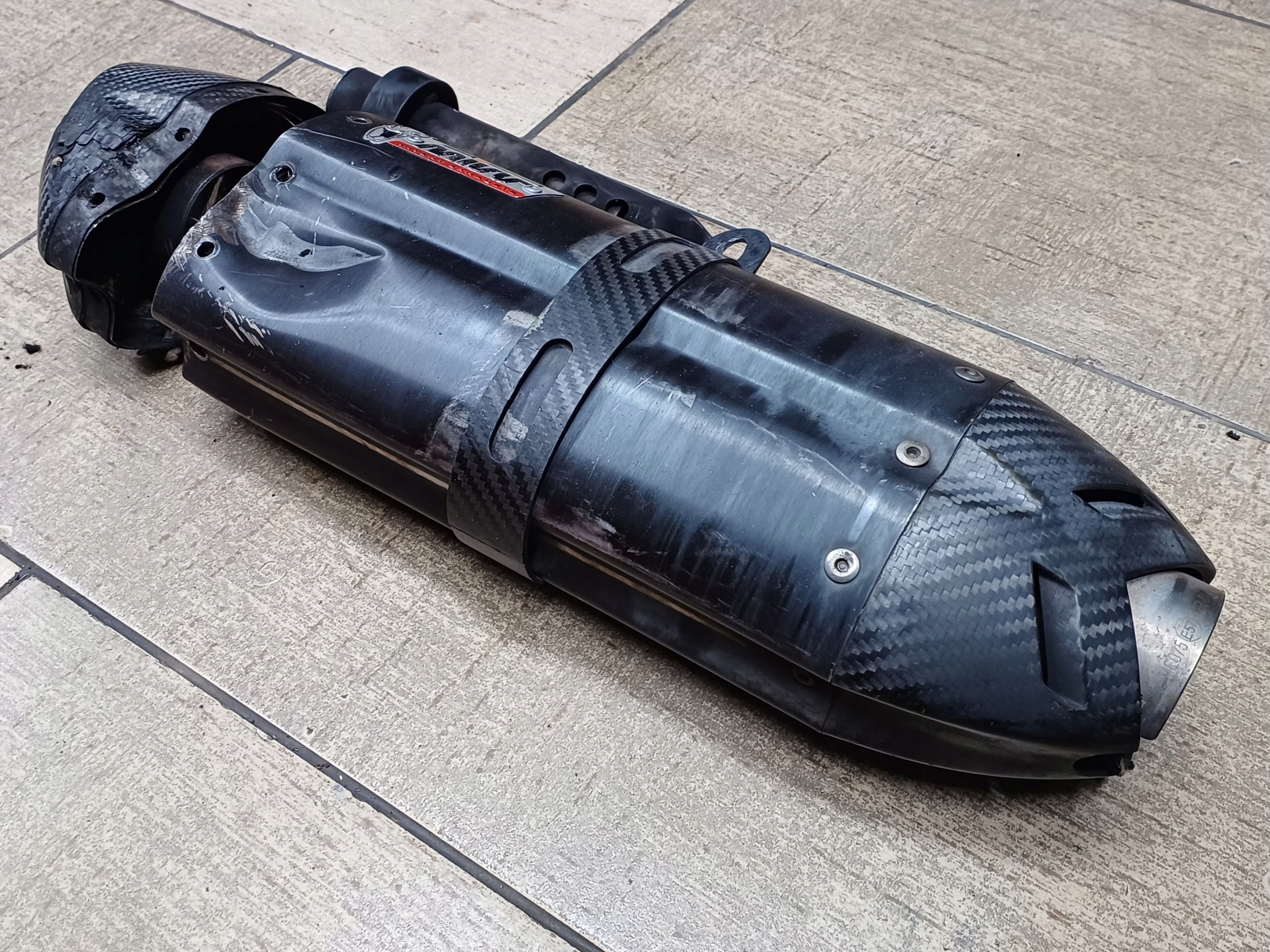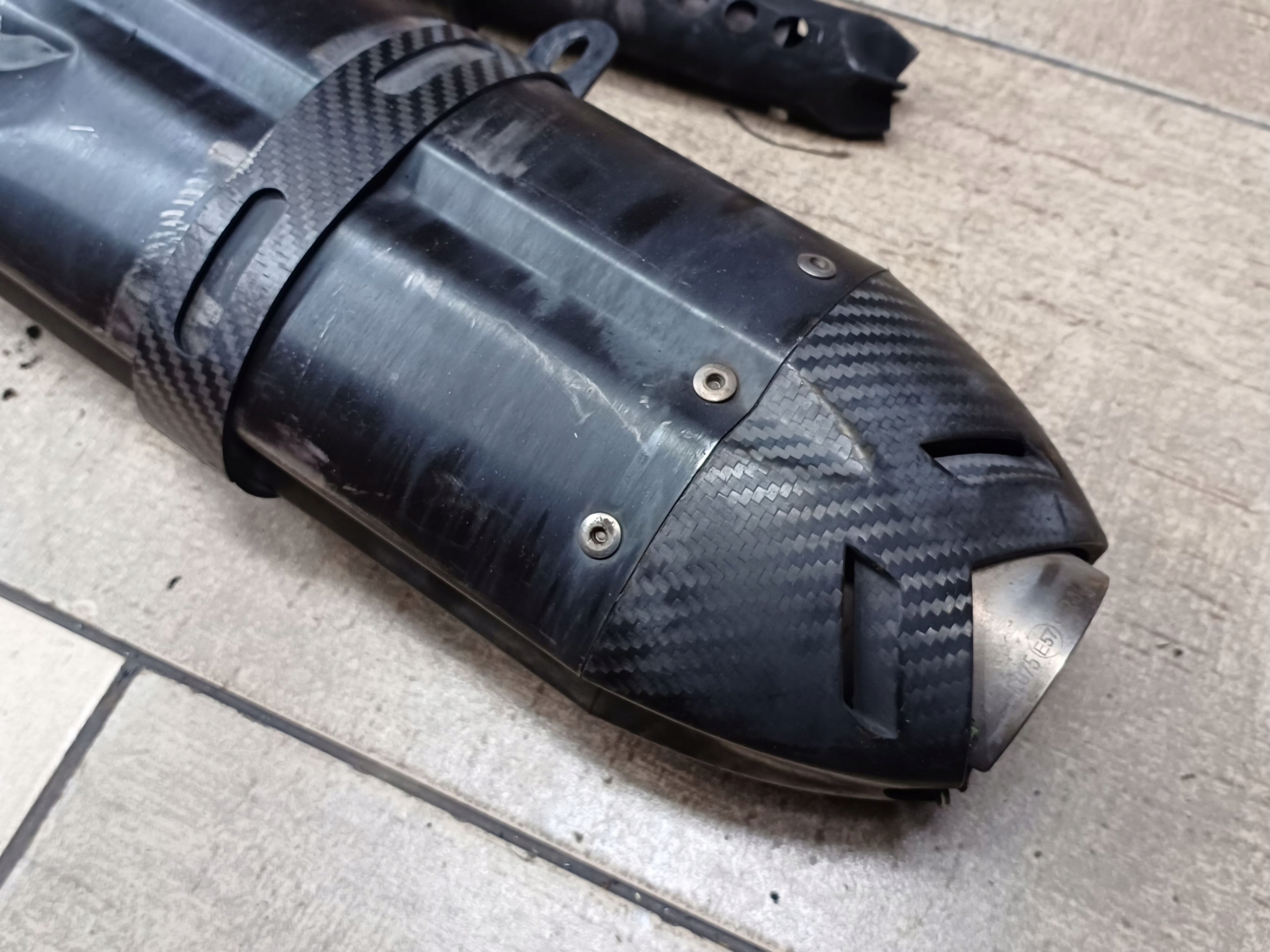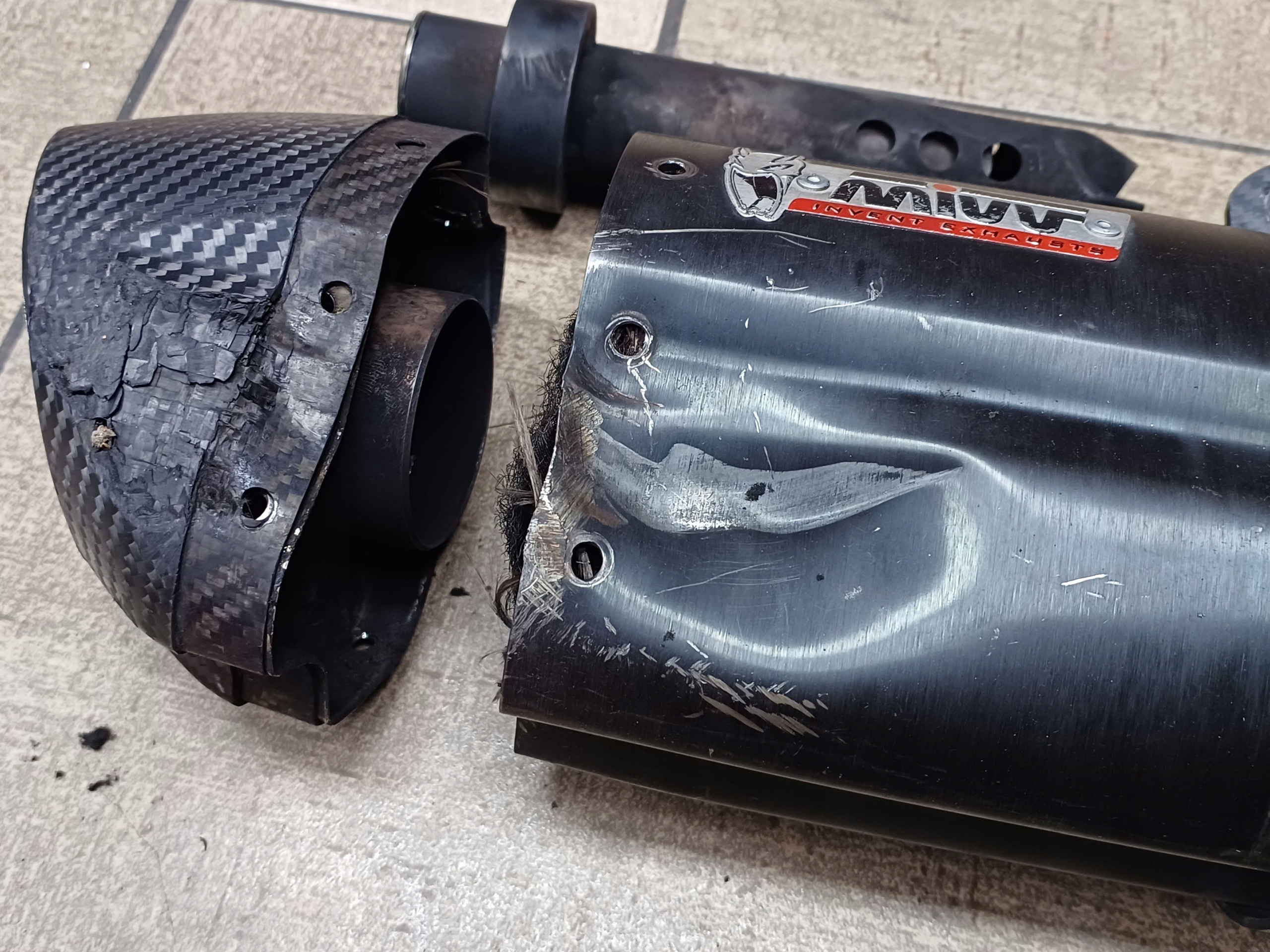 На глушителе имеются вмятины и повреждения, как показано на фотографиях. Заклепанный наконечник выхлопной трубы. В комплект входит набор db-kiler.