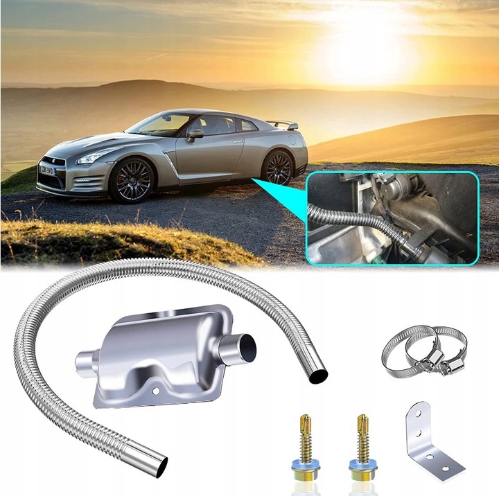 - Просто снимите старую или поврежденную выхлопную трубу и глушитель, прикрепите новый комплект из нержавеющей стали к автомобилю и закрепите оба конца выхлопной трубы хомутом. Установка занимает всего несколько минут.