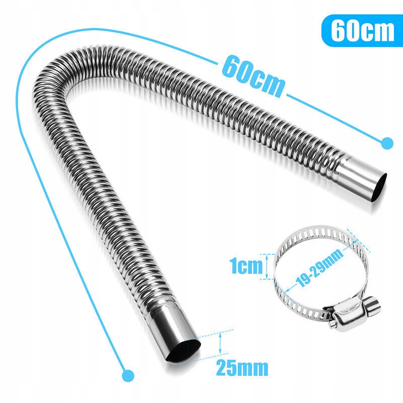 Выхлопной шланг из нержавеющей стали подходит для стояночных воздухонагревателей, стояночных воздухонагревателей, автомобильных воздухонагревателей и выхлопных газов генераторов.