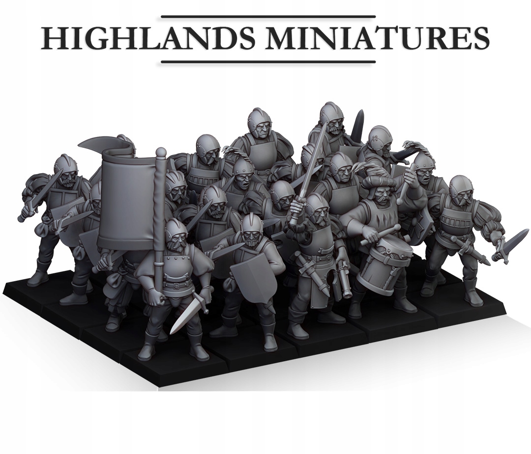 Предметом предложения является набор из 20 моделей Sunland Troops with Swords CMD от Highlands Miniatures, распечатанных на 3D-принтере. с использованием технологии SLA.