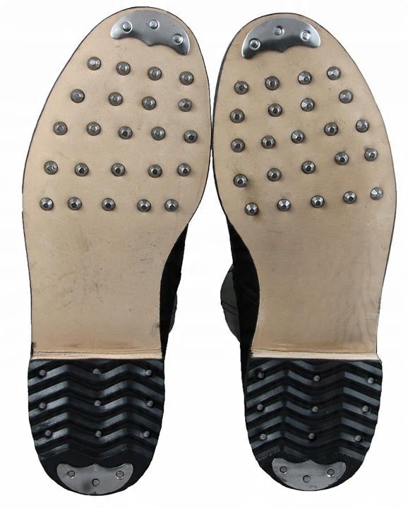 Кожа подошва обуви облицована клепками.