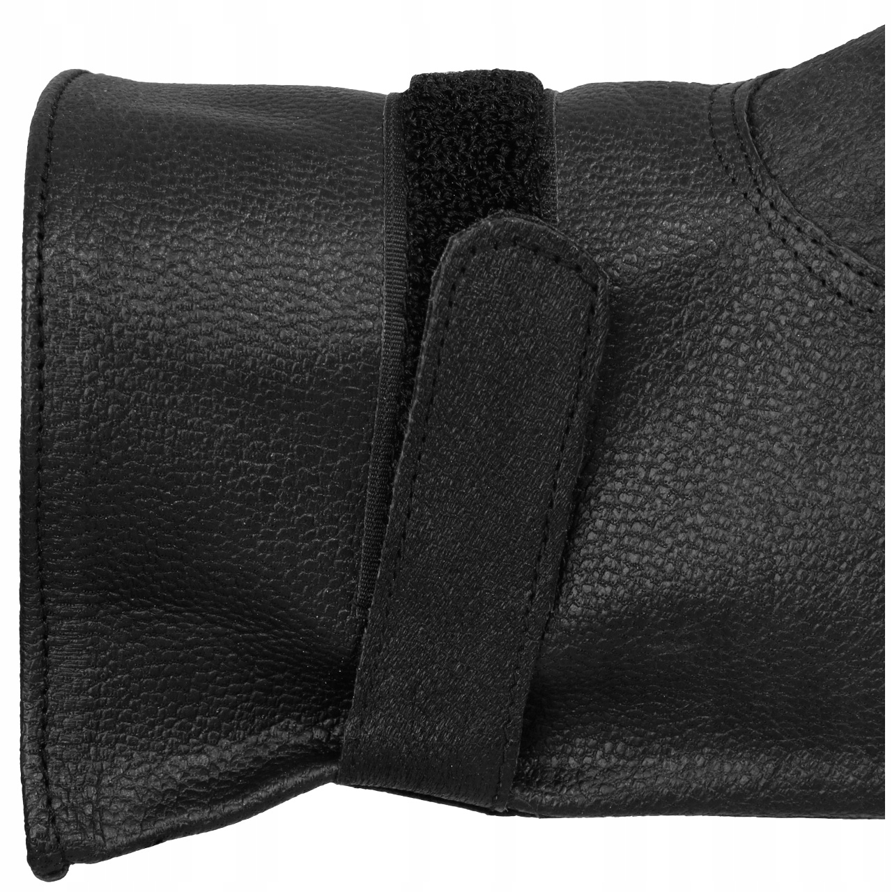 Длинная манжета надежно защищает запястье, а ремешок на липучке обеспечивает удобное крепление, предотвращающее соскальзывание перчатки с руки.