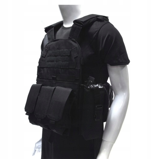 Боевой жилет позволяет носить все аксессуары для моллей, включая зарядные устройства для складов и кобуру для оружия.