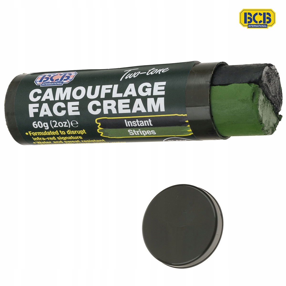Краска для тела предназначена для маскировки открытых участков кожи: лица, рук, шеи и за ушами. Он хорошо укрывает, а встречающиеся в природе оттенки обеспечивают хорошую маскировку. Новая формула не только маскирует глаза людей и животных, но также имеет фильтр, ограничивающий отражение инфракрасного света (IRR) для ночного видения. Двухцветный коричнево-черный стержень одновременно вытягивается из тюбика, что позволяет быстрее добиться должного маскирующего эффекта.