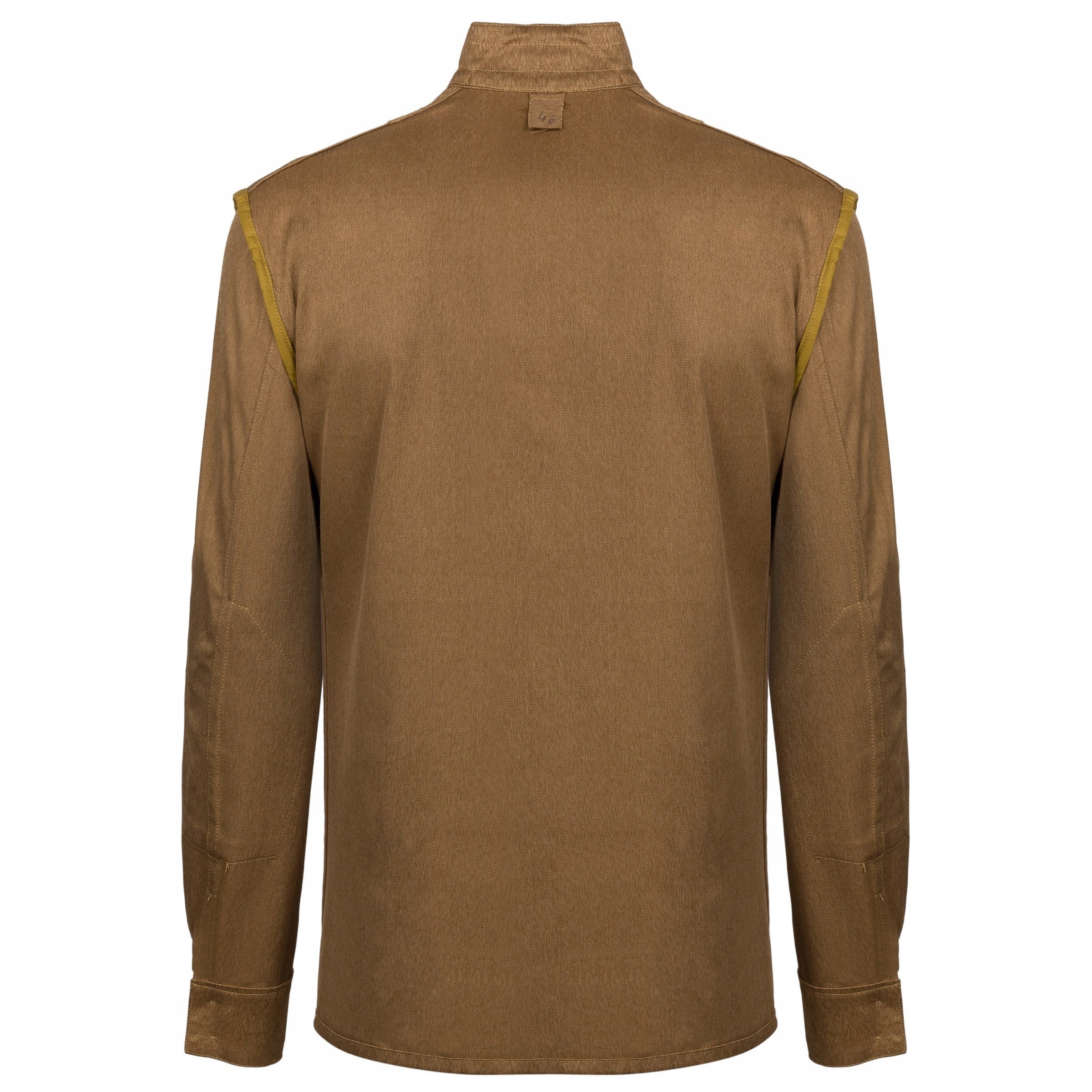 Идеальная копия советского солдатского гимнастического снаряда wz. 43. Этот вид гимнастики вошёл в обиход в 1943 году, с введением в Красную Армию погон, отсутствовавших в России после революции. Гимнастиорка изготовлена из хлопкового советского денима, структура и цвет материала переданы идеально, пуговицы рельефные. Цвет, видимый на экране, следует воспринимать с большой осторожностью — он может быть искажен настройками монитора и экспозицией, используемой при съемке фотографий.