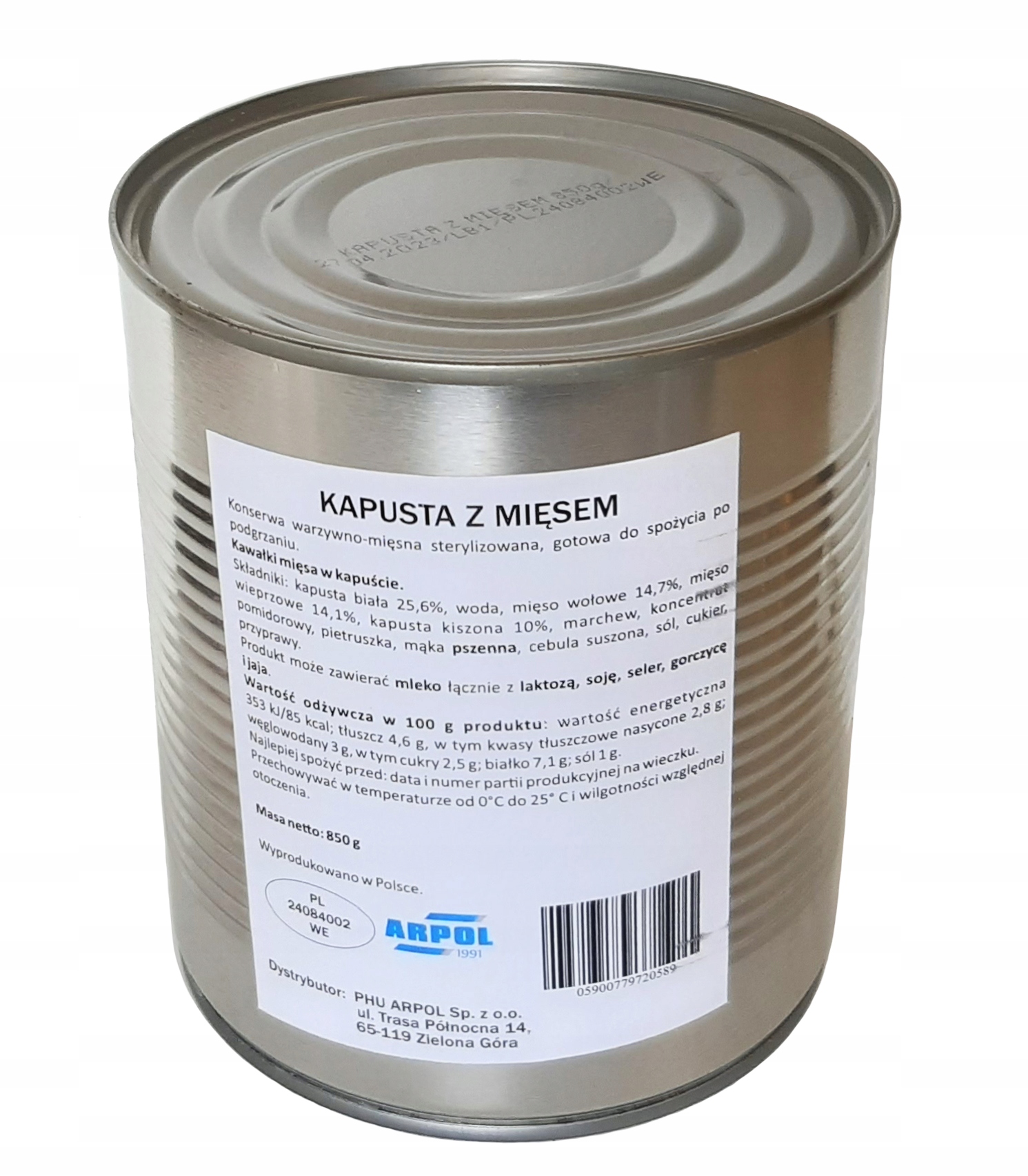 Просматривая «Военная капуста с сохранением мяса может 850 г WP», вы можете быть уверены, что данный товар из каталога «Оснащение» будет доставлен из Польши и проверен на целостность. В цене товара, указанной на сайте, учтена доставка из Польши. Внимание!!! Товары для Евросоюза, согласно законодательству стран Евросоюза, могут отличаться упаковкой или наполнением.