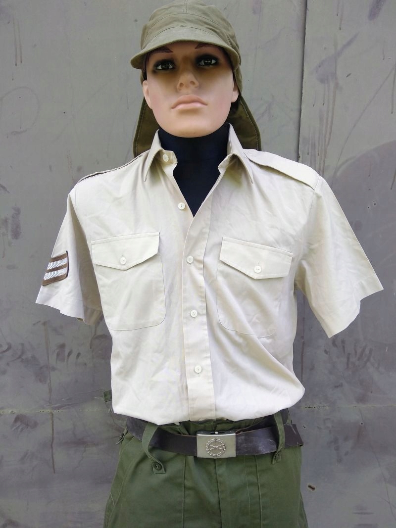 Мужская оригинальная контрактная военная рубашка с короткими рукавами и погонами. Британская армия. Сто процентная классика! Идеально подходит для путешествий в жаркие страны. Он отлично смотрится с джинсами, кожаным ремнем и шляпой. Легкий и быстросохнущий. Рубашки с большой грудью, несмотря на маленькие воротники. Если только мы не наденем галстук и не застегнем последнюю пуговицу, большинство из них будут приличных мужских размеров. Оригинал по привлекательной цене! Типичный цвет сафари-приключения - бежевый, как на картинке.