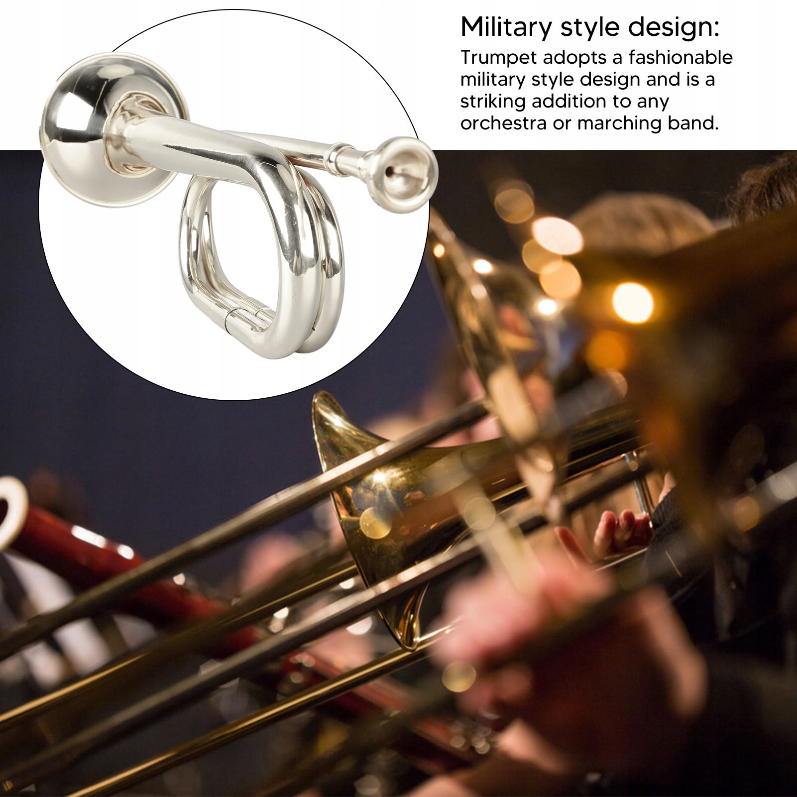 2. Дизайн в стиле милитари: труба имеет модный дизайн в стиле милитари, который станет ярким дополнением к любому оркестру или оркестру.