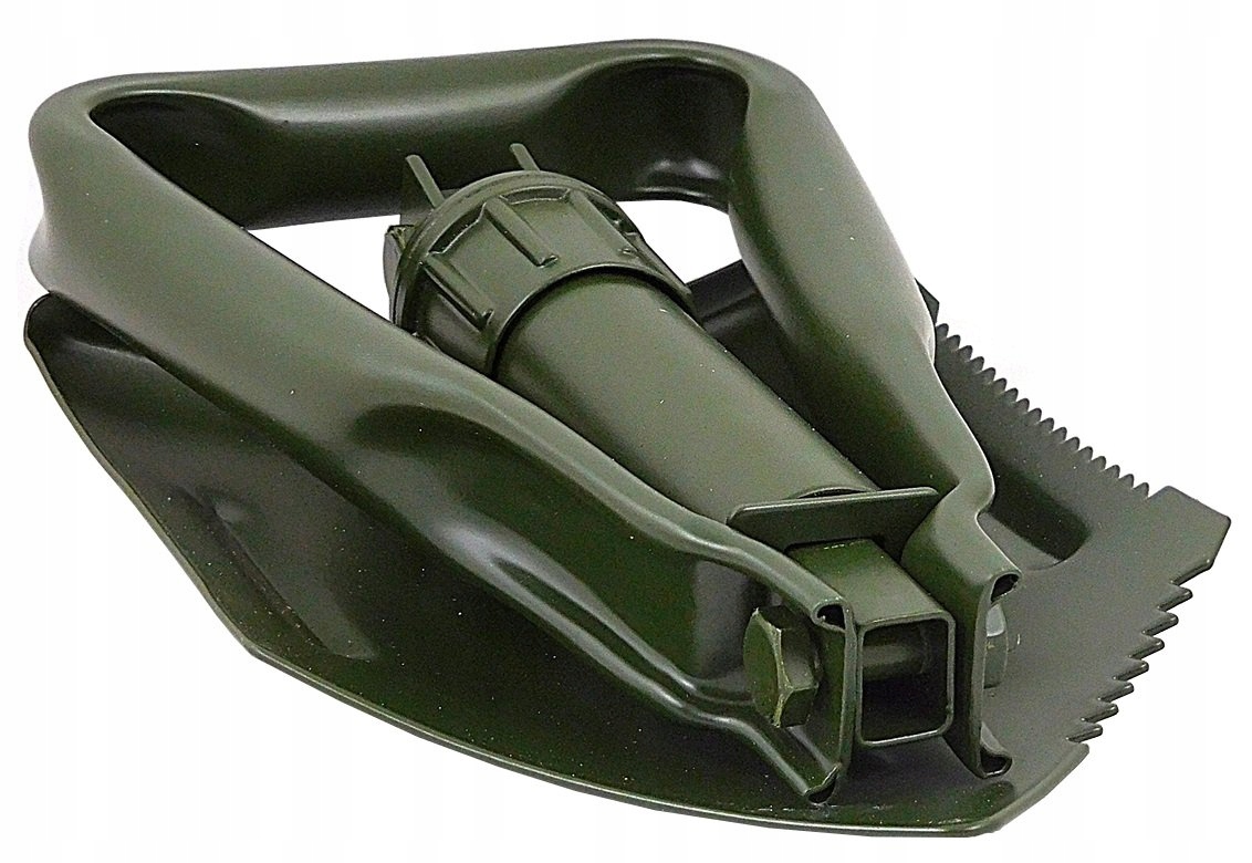 Надежная военная лопата, входящая в состав снаряжения, складная, полностью из стали. Лопата занимает очень мало места, что позволяет ее быстро и удобно переносить. Это универсальная модель, поскольку в разложенном наполовину состоянии она выполняет функции копателя, крюка или кирки (для копания земли, песка или мерзлого грунта).