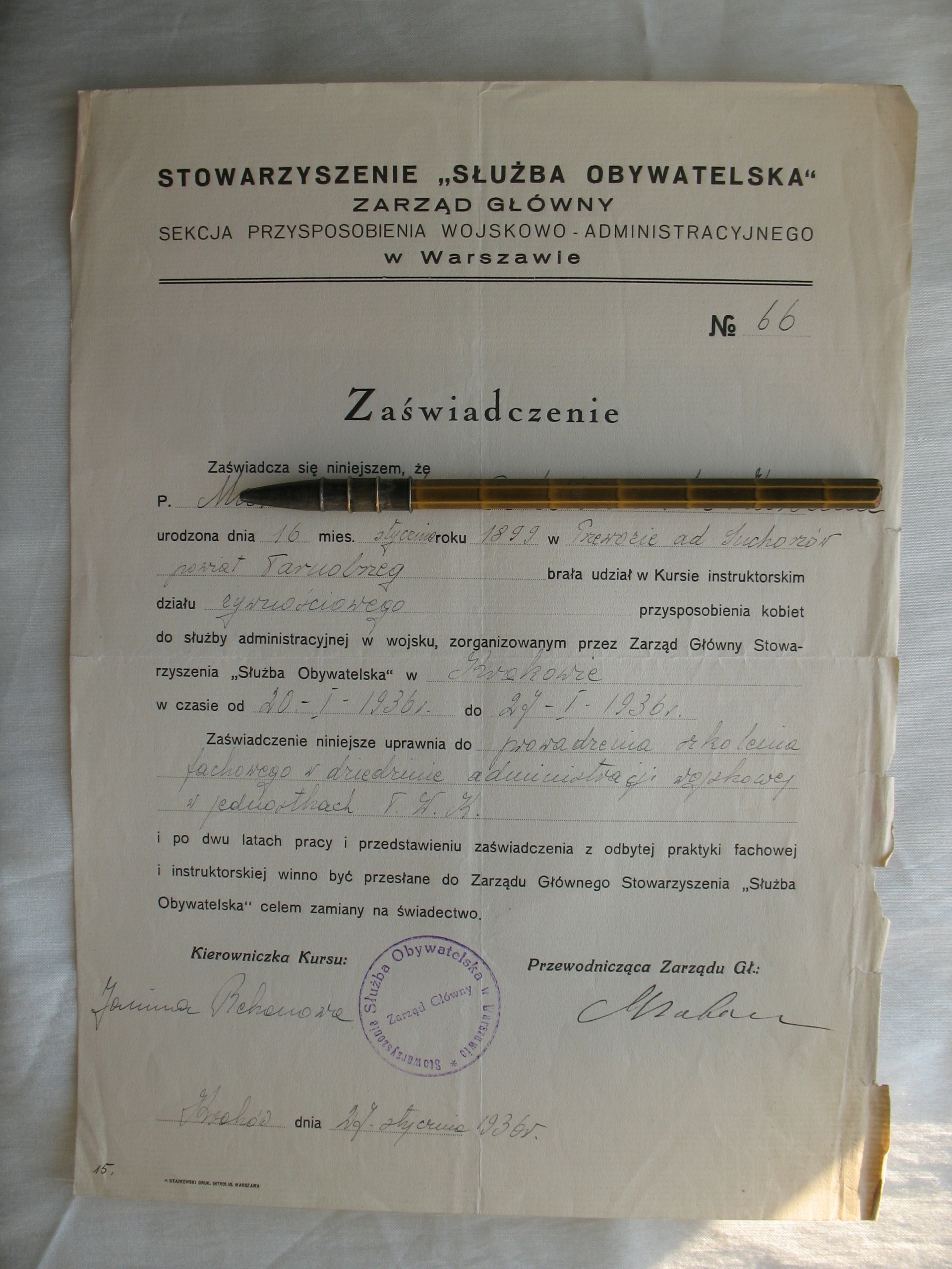 Старый, оригинальный, предварительный документ: Сертификат о завершении курса инструктора по усыновлению женщин в административную службу в армии. Оригинал Знакомство: 1936. Размеры: 220 x 296 мм. Поведение: по моему мнению -db, следы складывания на 4 частях, небольшая грязь, переоценивая, желтость бумаги, повреждение и дефекты на правом краю, все видимые на сканировании. Не стесняйтесь делать покупки