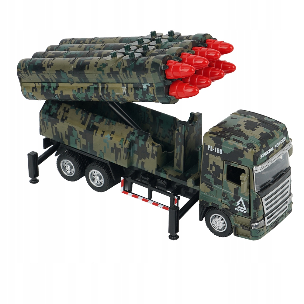 - Эта игрушечная машина оснащена 16 ракетами, которые можно заряжать, выгружать и запускать, а башню можно поднимать и опускать на 45 градусов.