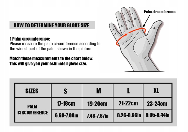 Внимание мы уделяем среднюю длину пальца в размерах: