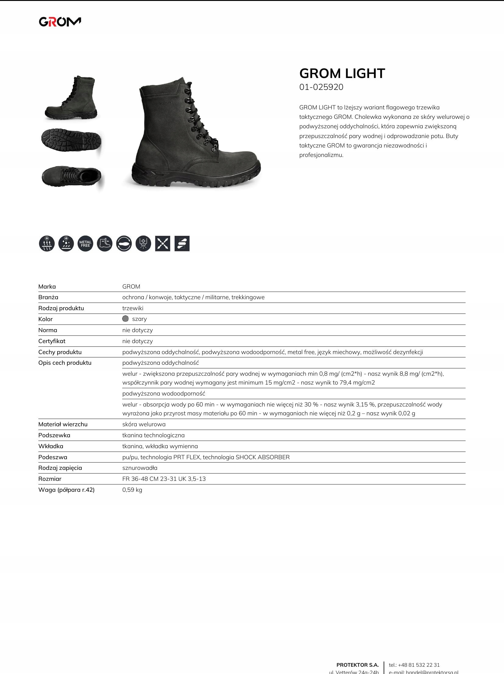 Изначально обувь GROM предназначалась в первую очередь для удовлетворения ожиданий тактического и военного секторов. 20-летняя традиция разработки безопасной и эргономичной обуви привела к огромному доверию, которым брендGROM может похвастаться сегодня. Успех определила команда специалистов и дизайнеров, которые вместе добились лояльности клиентов и безупречной репутации.