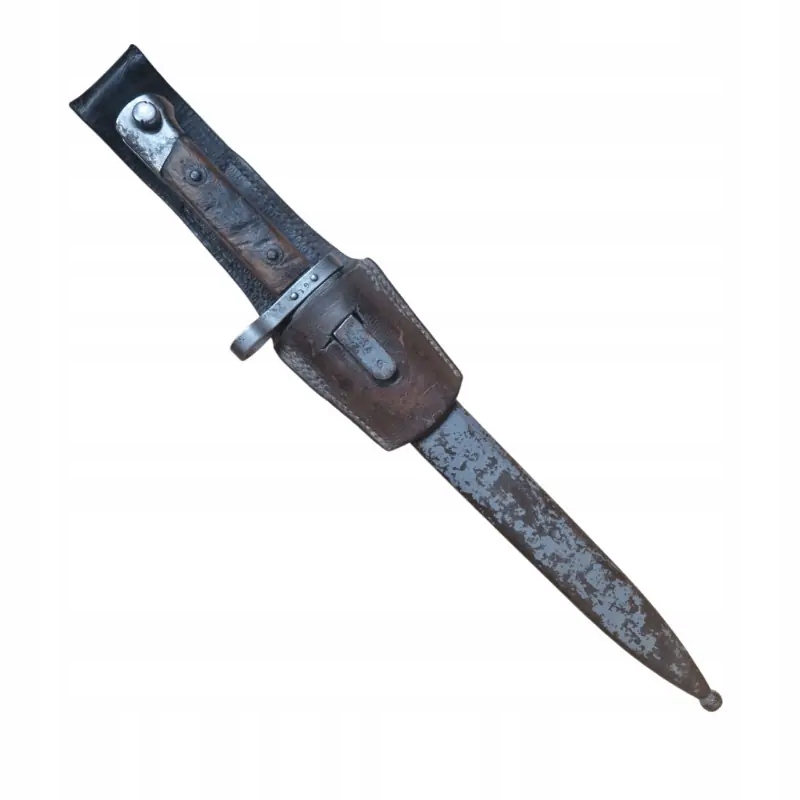 Штык Манлихера образца 1895 года для wz. винтовка. Манлихер 1895 года производства OEWG - STEYR, штык военный, явно принимал участие в боевых действиях, что хорошо видно по естественному боевому износу чехлов и брони, ножны окрашены в боевой серый цвет, ножны без складок в хорошем состоянии, штык в хорошем состоянии, износ чехлов по периоду, штык имеет, что очень важно, номер оружия, выбитый на головке рукоятки - 16808, на цевье дополнительно номер 61 и полковые избиения; 18 R, 18-й пехотный полк Императорской Королевской армии, накануне Первой мировой войны полк насчитывал около 4600 солдат, во время Первой мировой войны полк воевал против русских в 1914 и 1915 годах в Галичине, участвовал в Горлицкой битве, в том числе в боях за знаменитый «пустой» холм в Лужне, солдаты полка похоронены, в том числе, на военных кладбищах нет. 4 в Грабе, 138 в Богониовице, 139 в Турско-Лосье и 58 в Пшислупе.