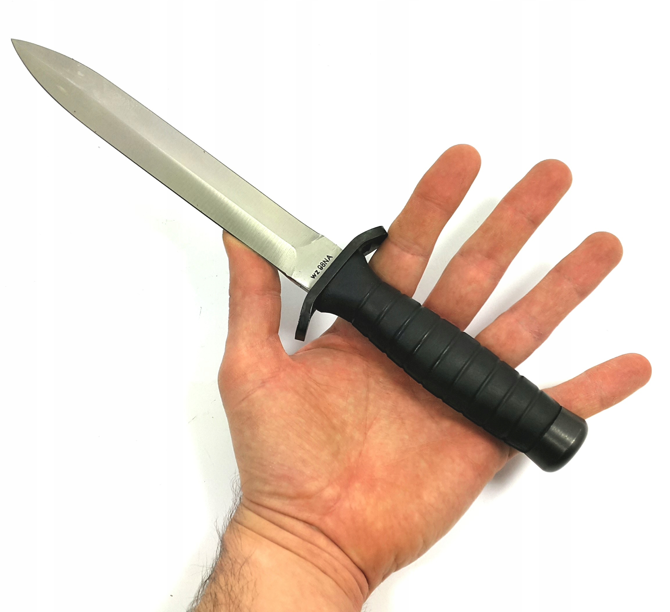 Нож wz.98 – один из лучших польских военных ножей в своем классе. Сочетание формы и параметров прочности ножа wz.98 с требованиями, предъявляемыми к ножам, используемым для выживания или разведки. Назначение ножа wz.98NA – резка различных видов материалов. Использование пружинной стали обеспечивает высокую прочность на изгиб и устойчивость к сколам. Закаленная крестовина защищает от случайного соскальзывания руки на лезвие во время работы ножом. Маслостойкая резина, из которой изготовлена рукоятка, обеспечивает надежный хват в любых климатических условиях. Головка рукоятки позволяет наносить всевозможные удары или может выполнять роль молотка. Нож был разработан с учетом множества различных применений, его можно использовать как в спортивных целях, таких как метание ножей, так и для многих чисто утилитарных целей, таких как одевание игры, приготовление еды, резка веток, веревок, очистка рыбы, и т. д.