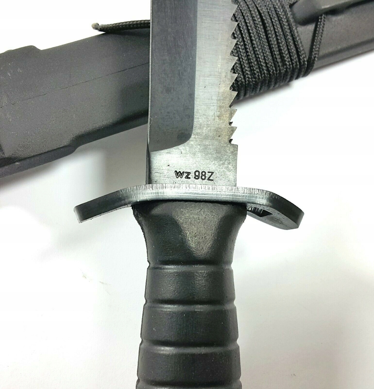 Нож wz.98 – один из лучших польских военных ножей в своем классе. Сочетая форму и прочностные параметры ножа wz.98 с требованиями, предъявляемыми к ножам, используемым в выживании или разведке, клинок оснащен пилой. Целью модификации было повышение универсальности ножа. Назначение ножа wz.98z – резка и распиловка различных видов материалов. Использование пружинной стали обеспечивает высокую прочность на изгиб и устойчивость к сколам. Закаленная крестовина защищает от случайного соскальзывания руки на лезвие во время работы ножом. Маслостойкая резина, из которой изготовлена рукоятка, обеспечивает надежный хват в любых климатических условиях. Головка рукоятки позволяет наносить всевозможные удары или может выполнять роль молотка. Нож был разработан с учетом множества различных применений, его можно использовать как в спортивных целях, таких как метание ножей, так и для многих чисто утилитарных целей, таких как одевание игры, приготовление еды, резка веток, веревок, очистка рыбы, и т. д.