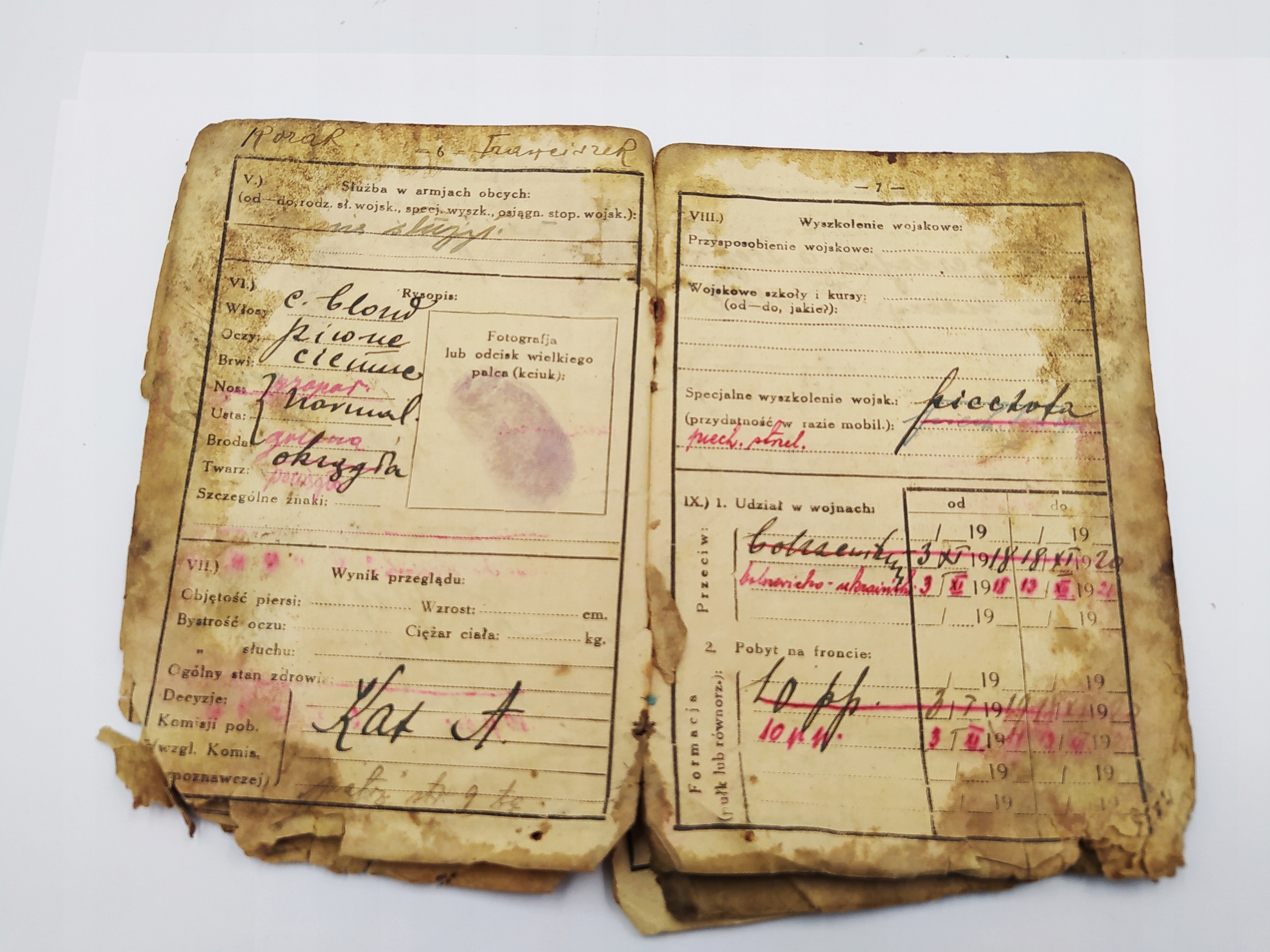 Военный буклет П.К.У. Lipno Toruń Minsk M.1918 10 P.P. 67 P.P.Goleszów