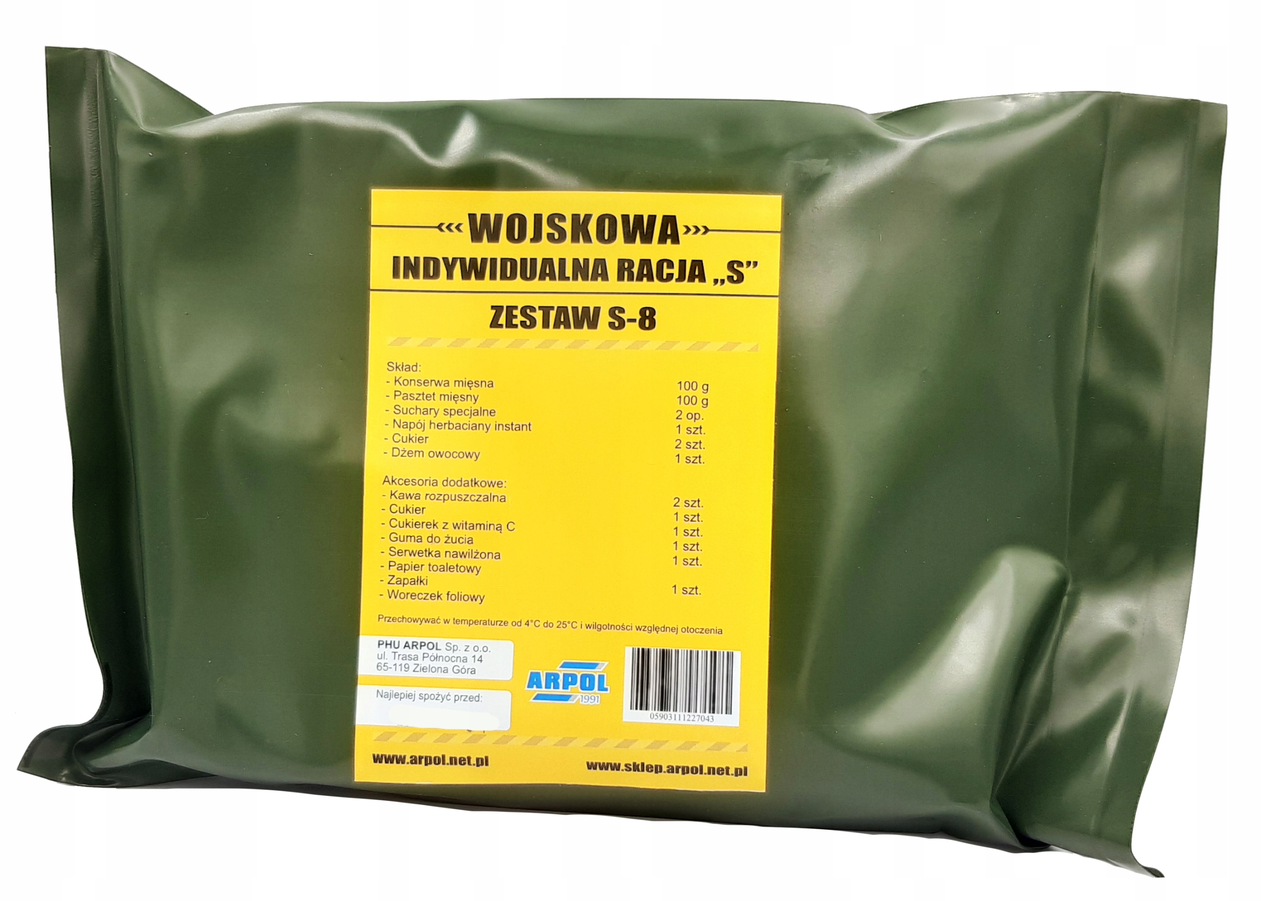 ОРИГИНАЛЬНЫЙ ПИЩЕВОЙ РАЦИОН - ВОЕННЫЙ ПАЦИОН S - НАБОР S 8
