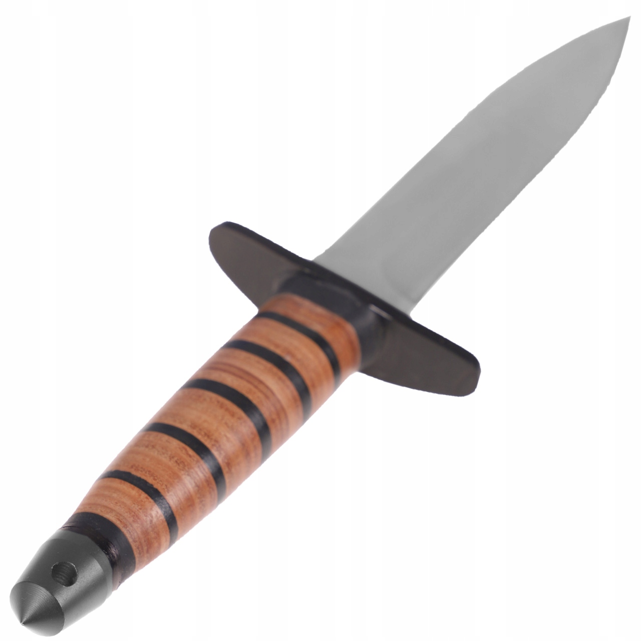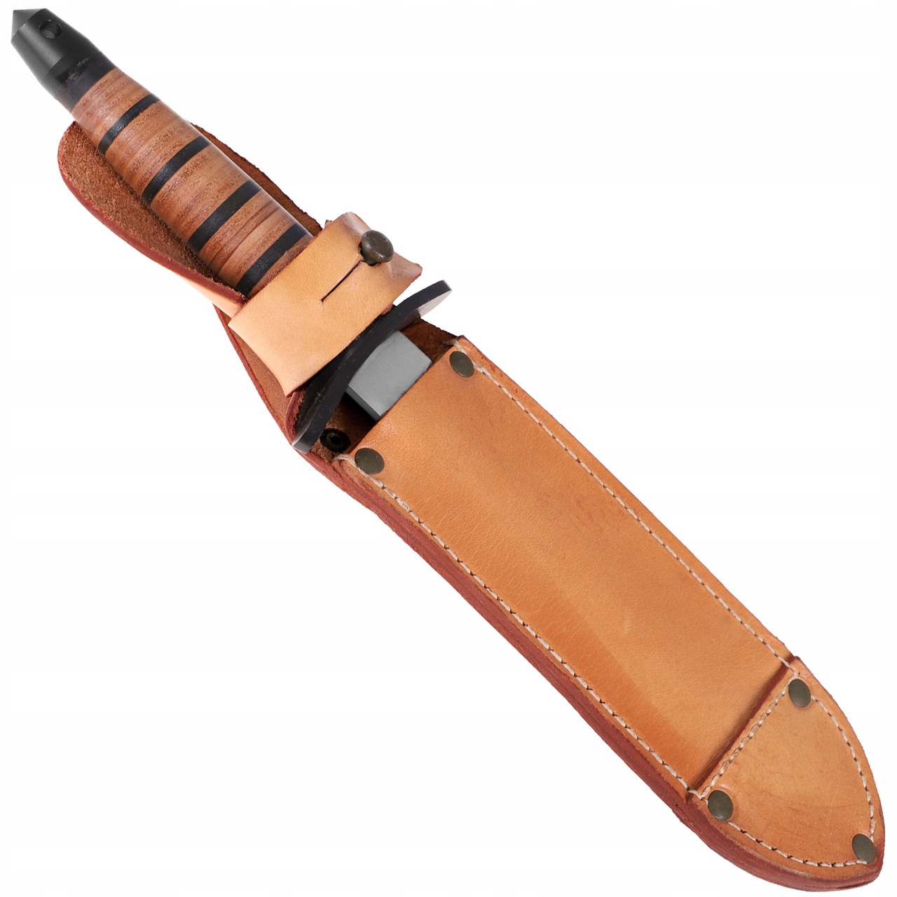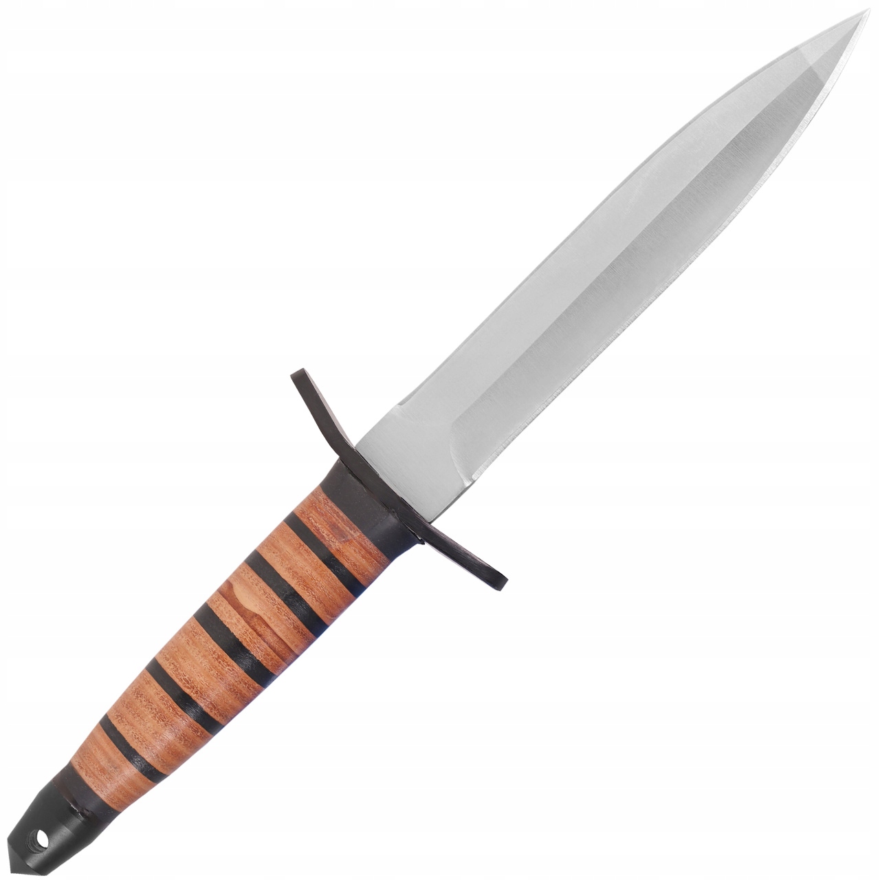 Качественная нержавеющая сталь и классическая кожаная ручка дает долговечность ножа и оригинальный военный характер.