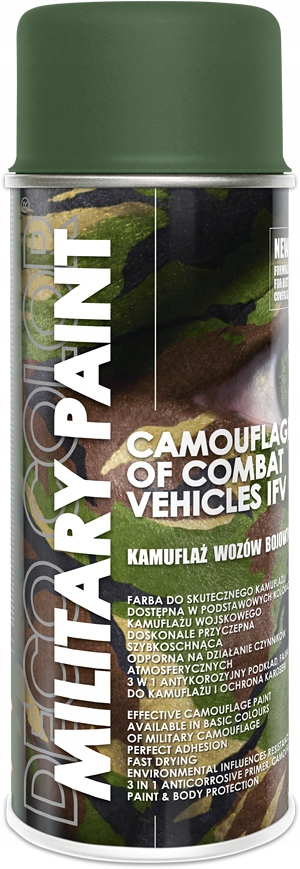 Антибликовая краска, используемая как для камуфляжа, так и для ремонта военной техники. Он имеет широкий спектр применений при маскировке охотничьих действий, но в основном используется для маскировки снаряжения в очень популярных играх ASG типа Milsim.