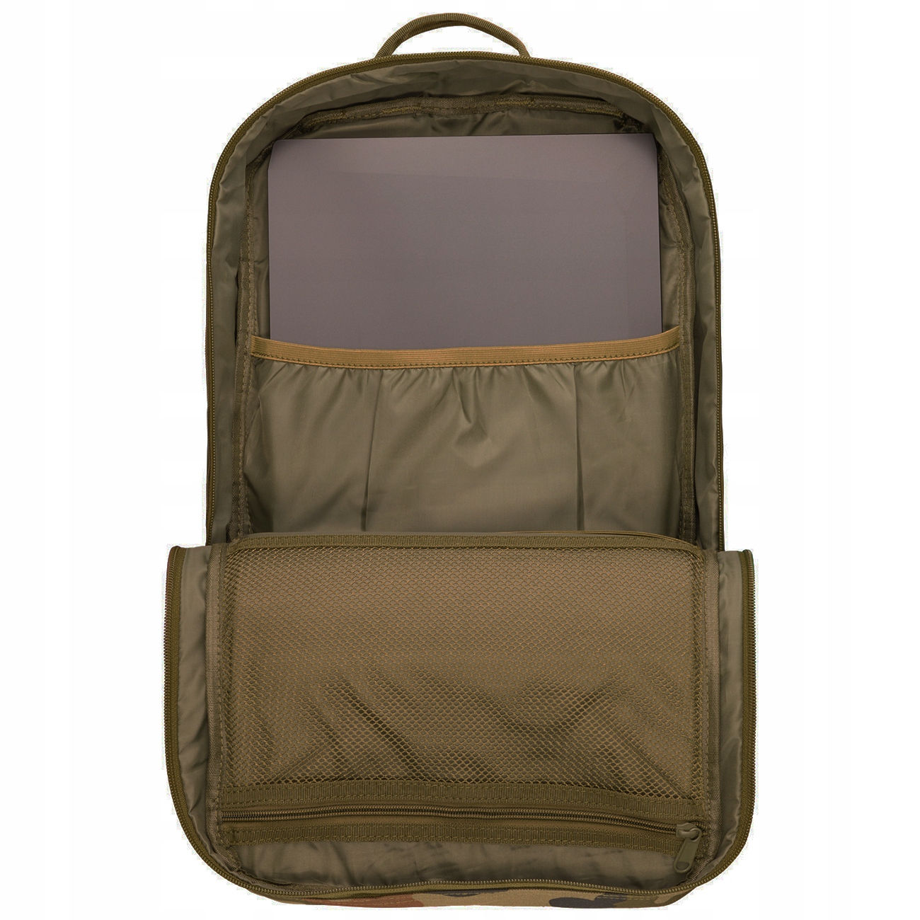 Внешние ленты совместимы с системой Molle/Pals, что позволяет прикрепить дополнительное оборудование и увеличивать емкость рюкзака. Боковые ремни сжатия позволяют вам соответствовать рюкзаку с его содержанием. Блаженные брекеты и рюкзак с вентиляционными каналами обеспечивают комфорт ношения даже при высокой нагрузке. Брекеты шириной 5 см оснащены практическими D-кольцами. Кроме того, рюкзак имеет регулируемый подвздошной пояс, который помогает в лучшем распространении веса и ручке для переноски рюкзака в руке.