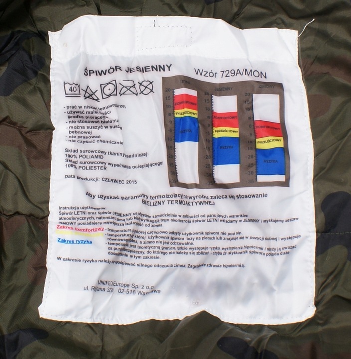 Военный спальный мешок WP 729a/Mon - это система, которая состоит из двух спальных мешков: лето и осень. Кроме того, при размещении летнего спального мешка в осень образуется зимний спальный мешок. Предложение относится к обоим спальным мешкам. Производитель спального мешка является Unifeq последним оригинальным военным спальным мешочком, который в настоящее время используется в WP ° C