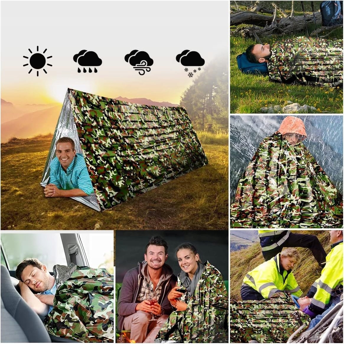 ⭐ Этот многофункциональный спасательный предмет можно использовать как одеяло, спальный мешок или даже как импровизированная палатка.
