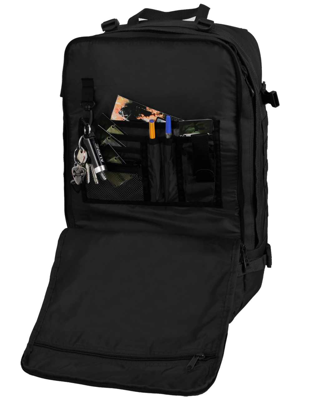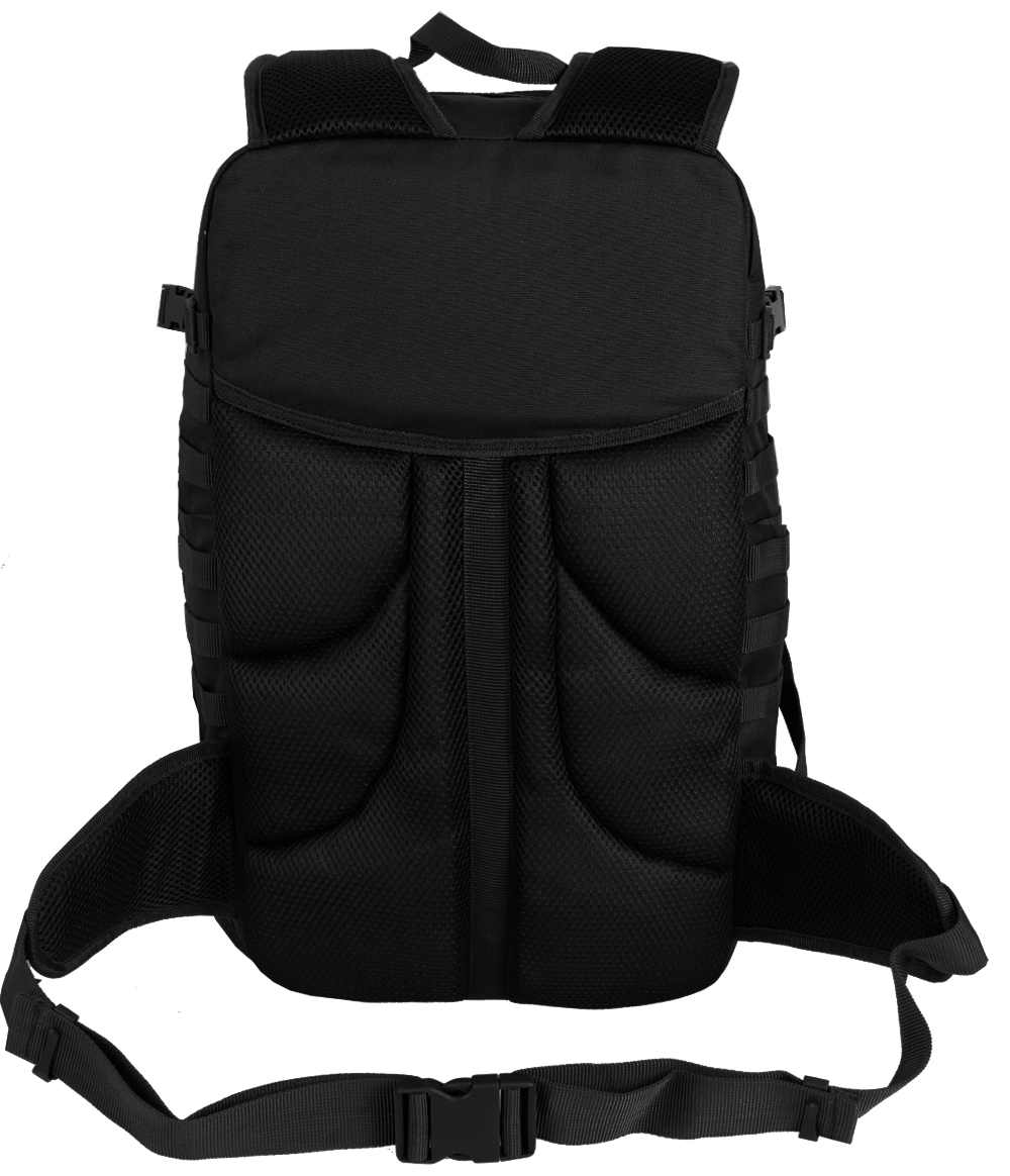 Спереди и по бокам отделаны монтажные ленты, соответствующие стандарту Molle и позволяющие прикрепить дополнительное оборудование, например, аптечку или подсумки.