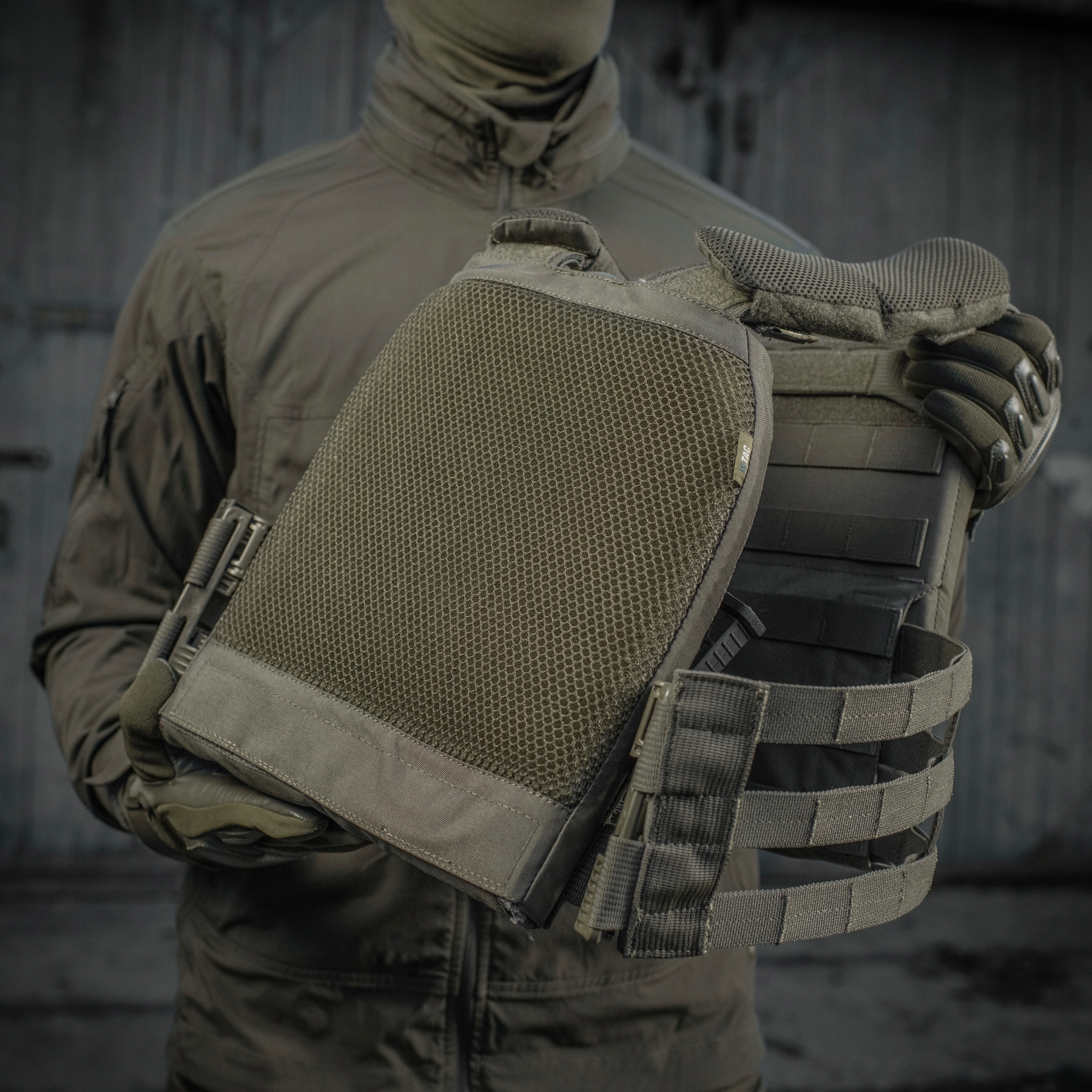Удобные подушечки они состоят из удлиненного кармана на молнии YKK®, внутри находится пена, гарантирующаяхорошую амортизацию, которую при необходимости можно заменить на другой материал. Внизу имеется разделительная сетка 3D MESH, обеспечивающая хорошую вентиляцию. Comfortpad крепится к ремню безопасности с помощью липучек. Кроме того, к жилету можно прикрепить специальный наплечник, что повышает комфорт при использовании более тяжелых баллистических пластин.